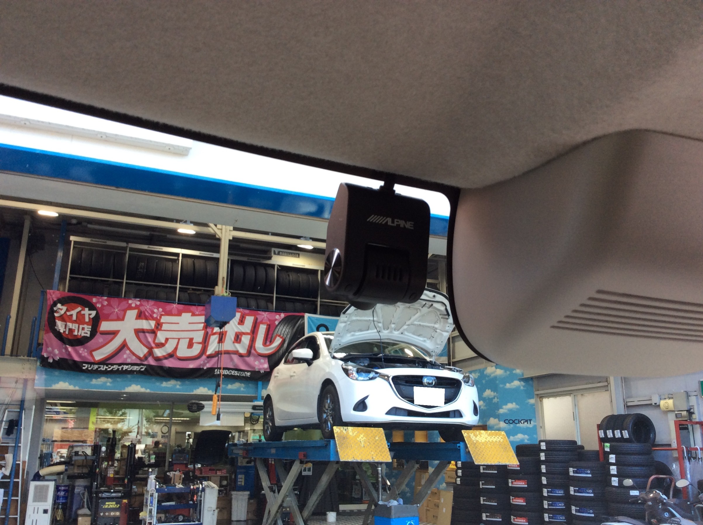 やっぱりインナーミラーが欲しいとの事でしたので、アルパインさんのインナーミラー「DVR-DM1000A-IC-NB-56」をお取り付けしました。