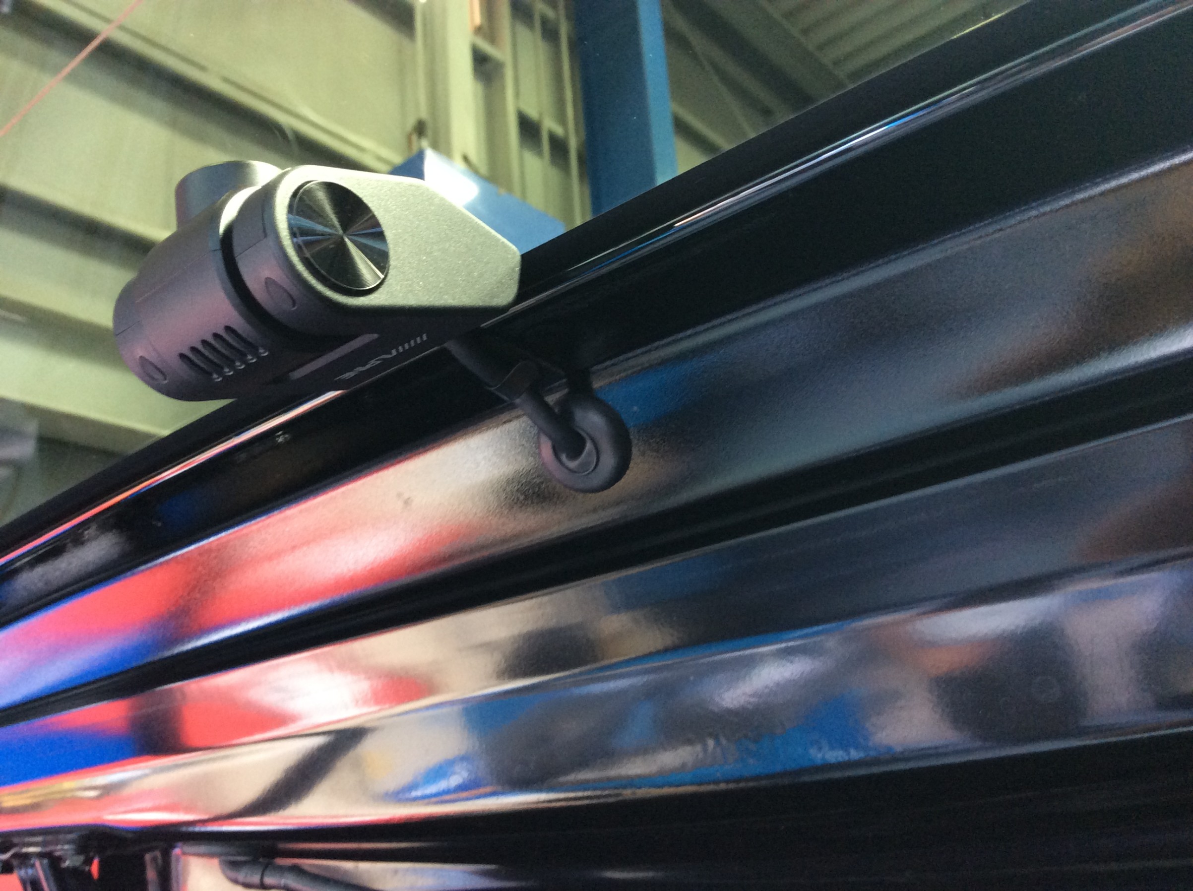 フロントカメラはこれまたいつもの様に、視界の邪魔にならない様に貼り付けします。