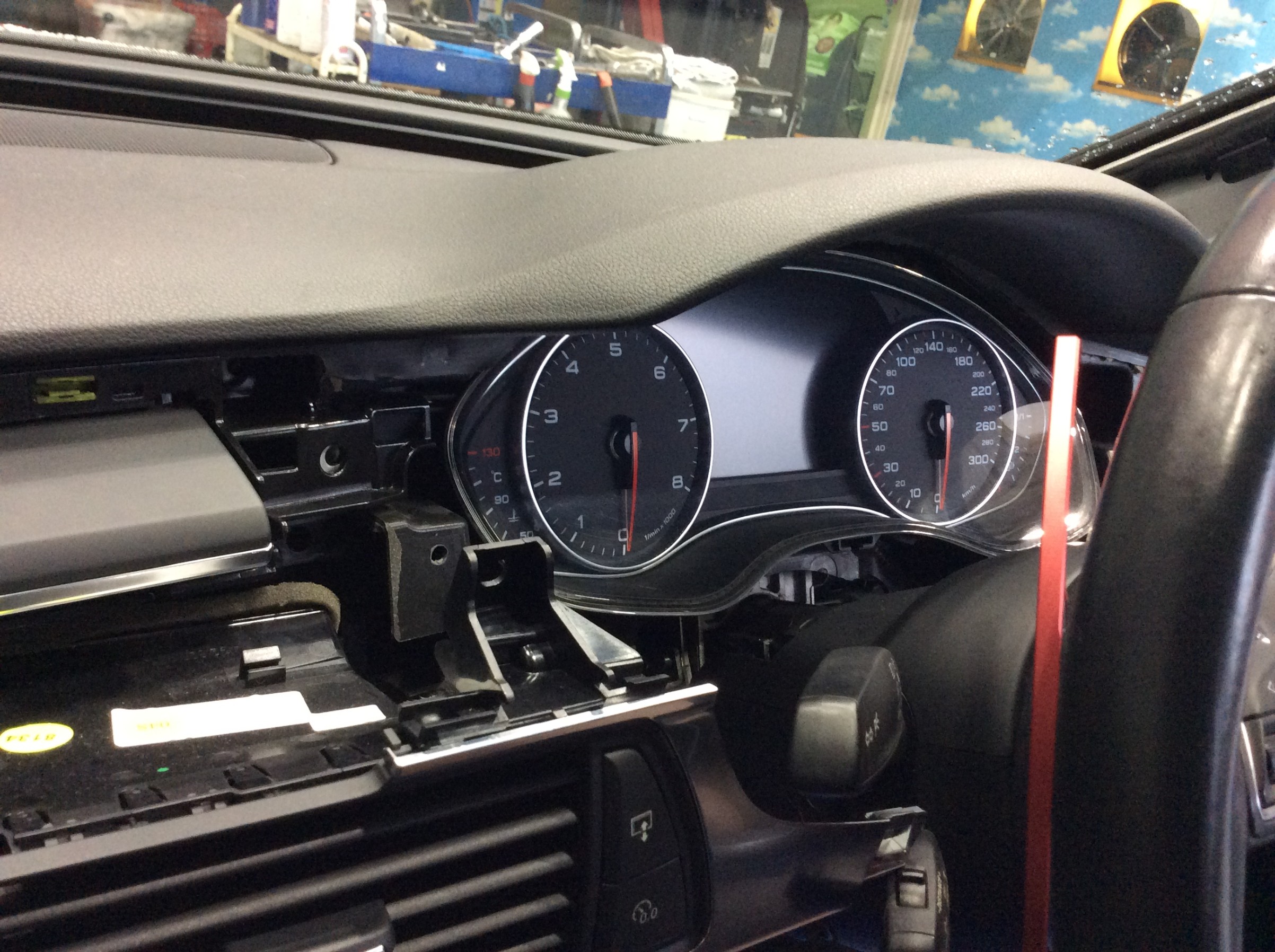 お客様のご希望の位置に取付する為、メーター廻りなどをバラしました。