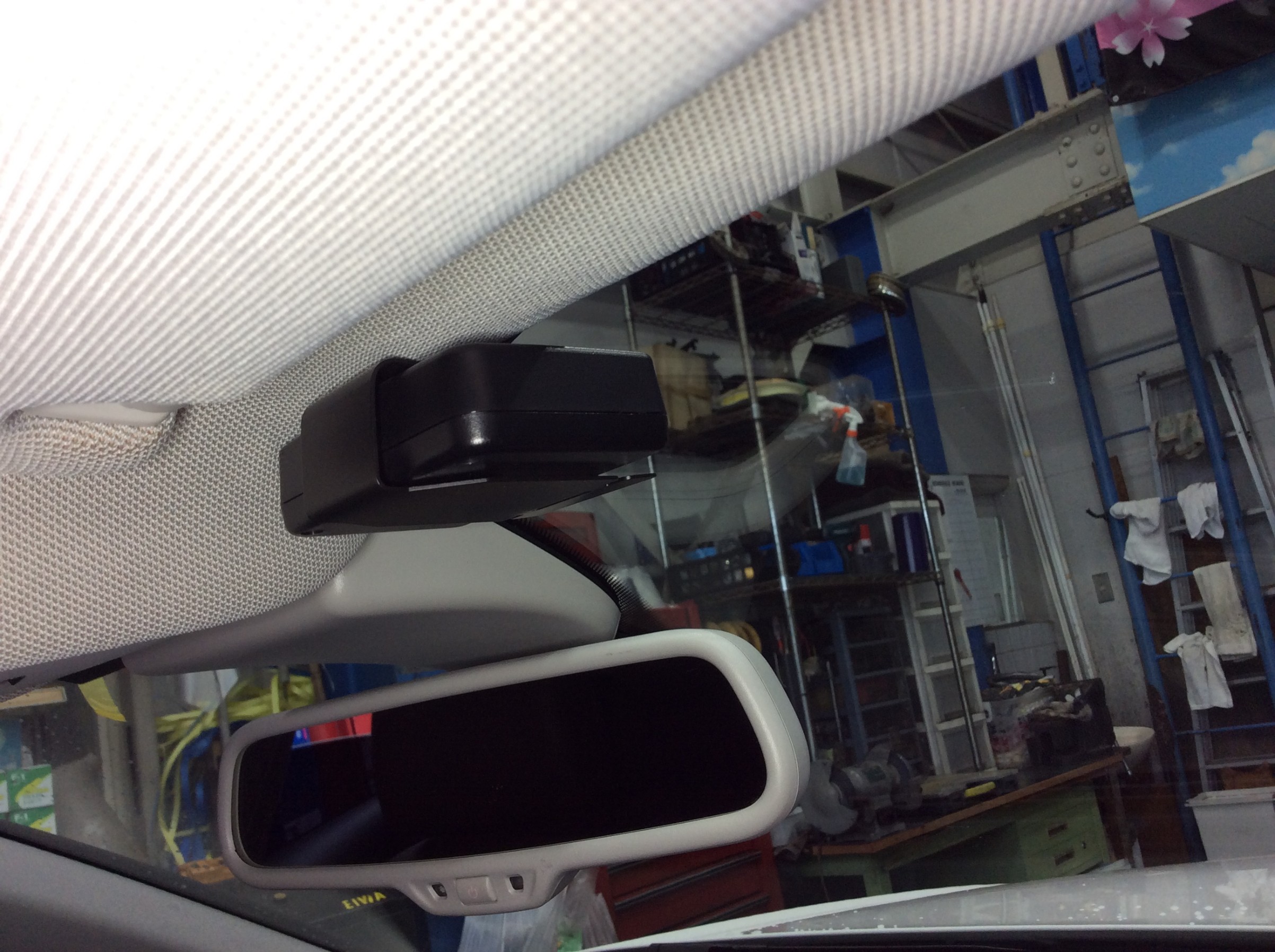 レーダーは2ピースタイプなので、アンテナ部はフロントガラス上部ミラー横に吊り下げ。