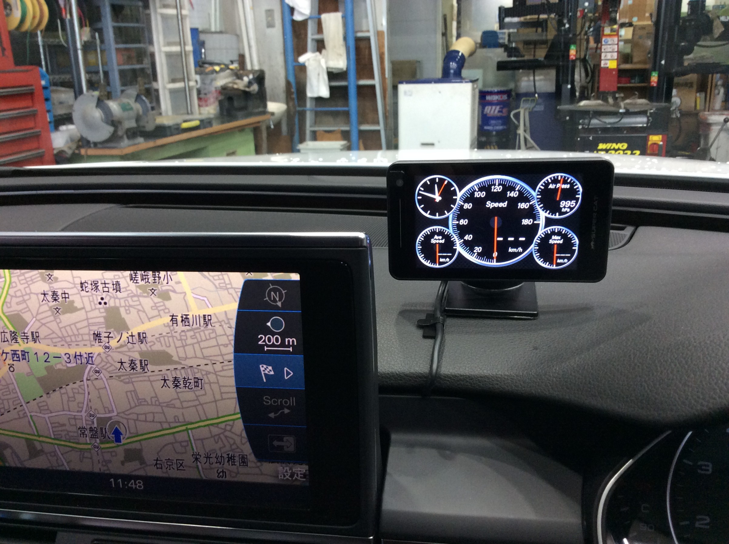 本体はご希望のメーターとモニターの間に貼り付けいたしました。