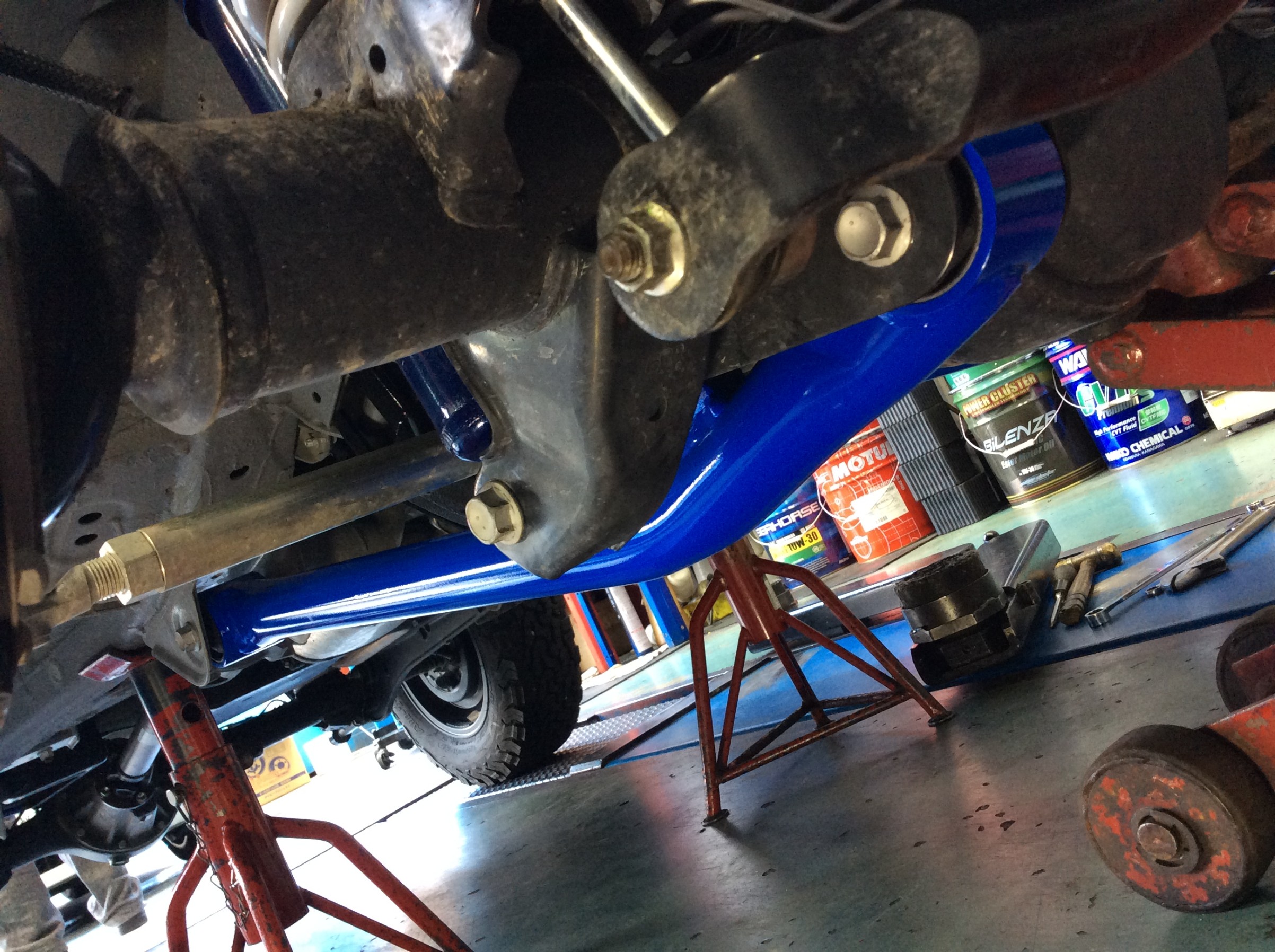今回もラテラルロッドにて前後のタイヤの出面を調整、ブレーキホースもロングに交換していますので、エア抜きもシッカリして完成です。