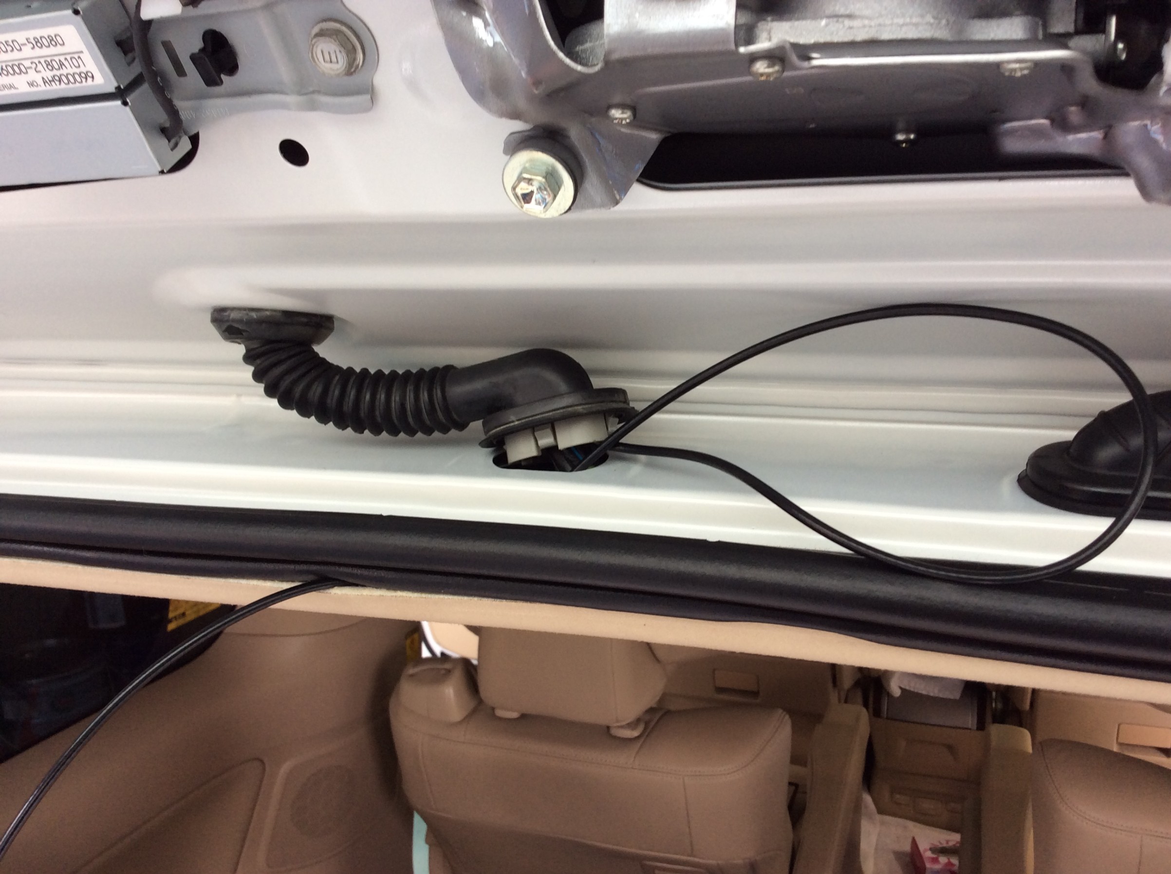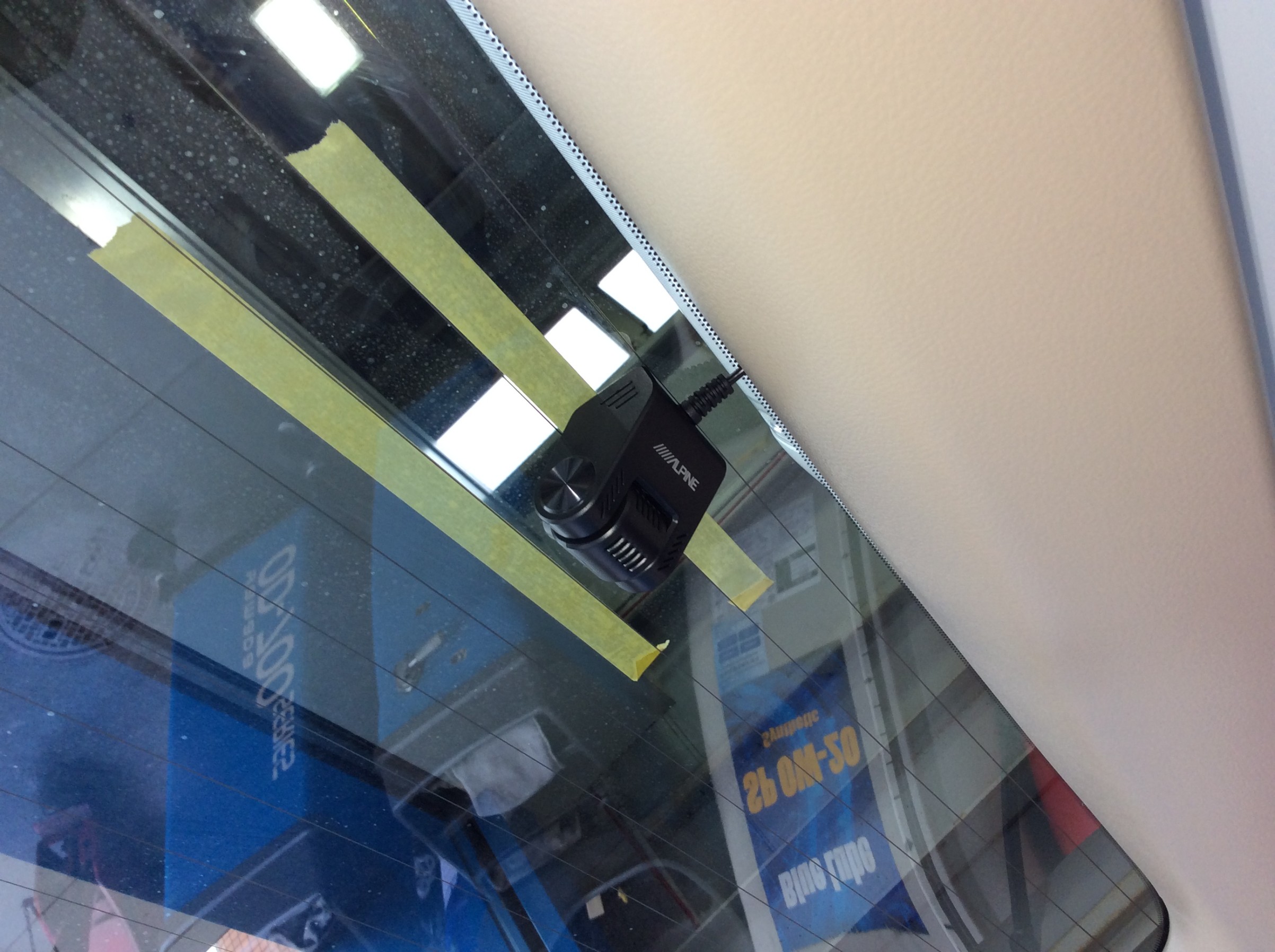 今回、車種専用取付キットを用意したのですが、内装色と合わないのでリアカメラカバーは使用せず、ガラスの上部に直接貼り付けました(熱線が映り込まない様調整)。