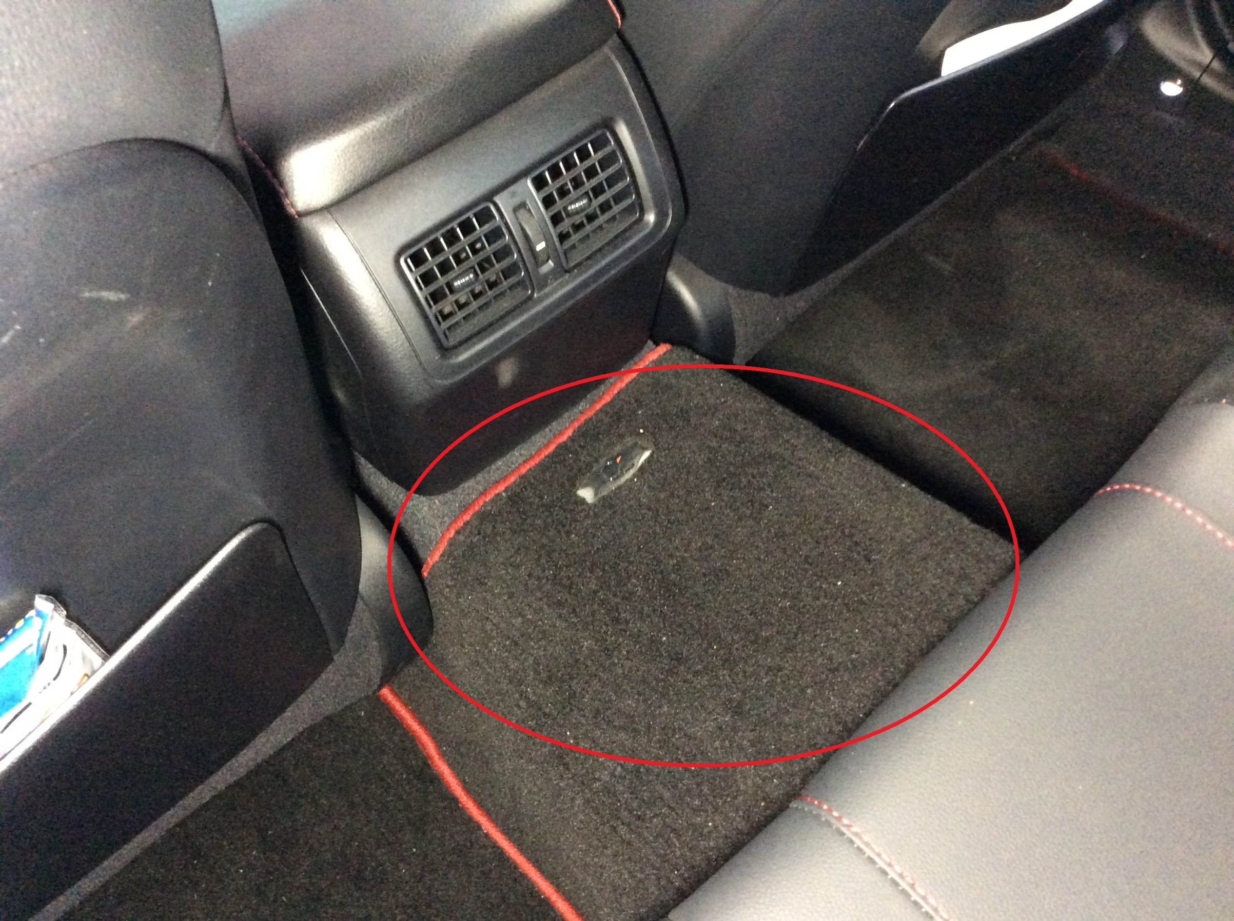 それは後席スペースの真ん中のココです。
