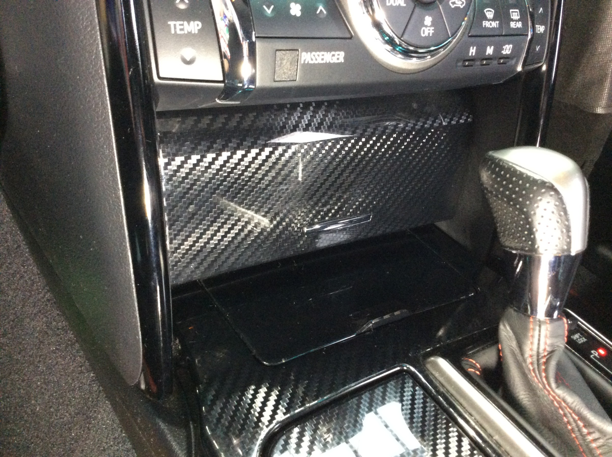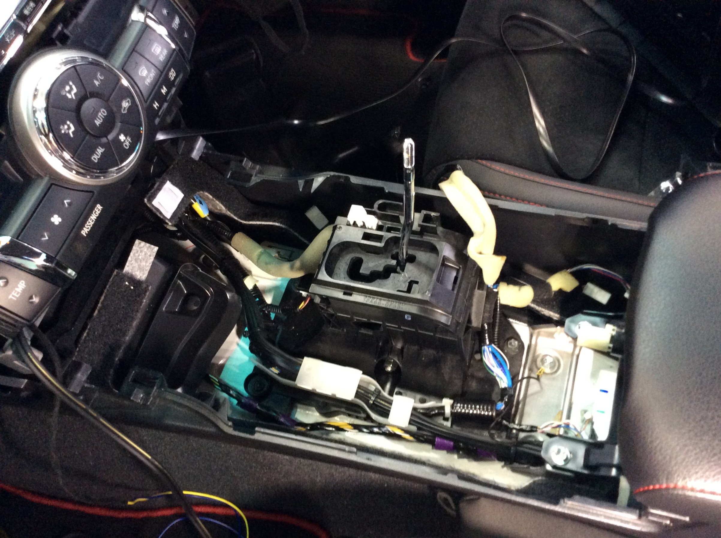 まずは配線をオーディオの裏から取付場所まで、センターコンソールに沿わせて通していきました。