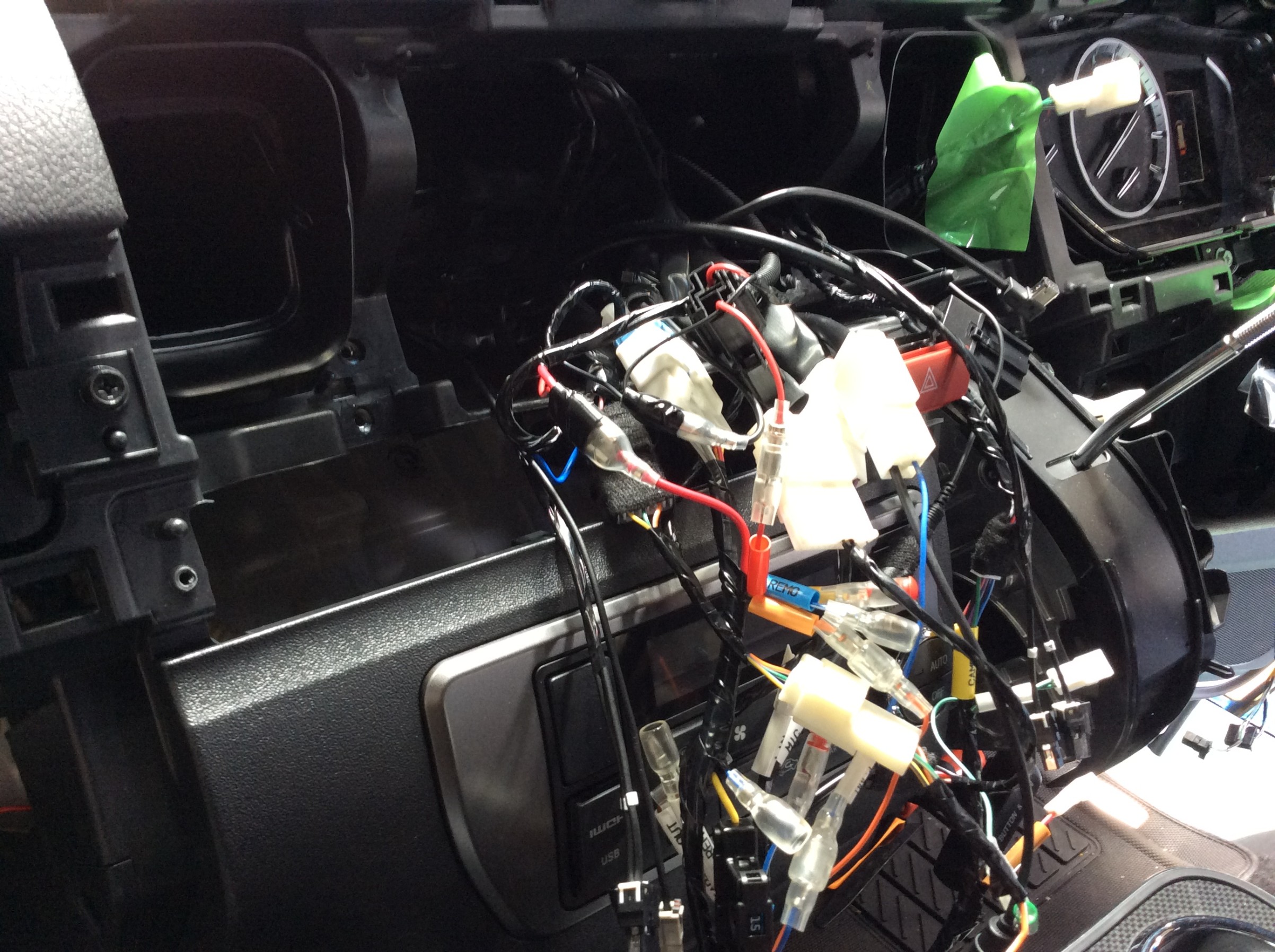 アンテナ線やカメラ線、電源線など必要な配線を全てオーディオ裏に集中。