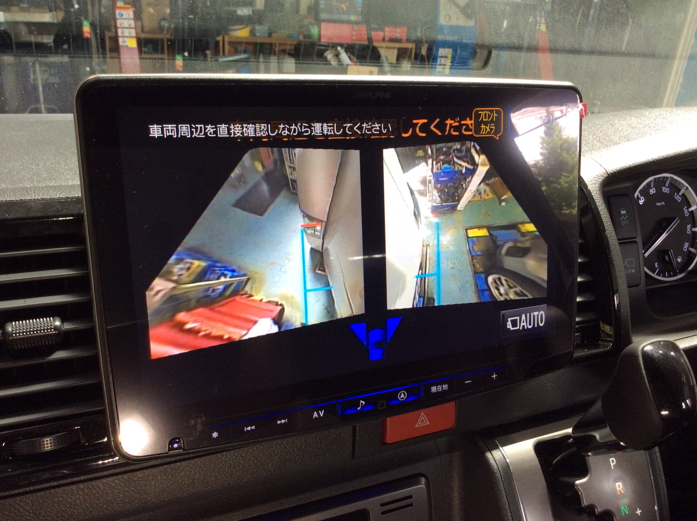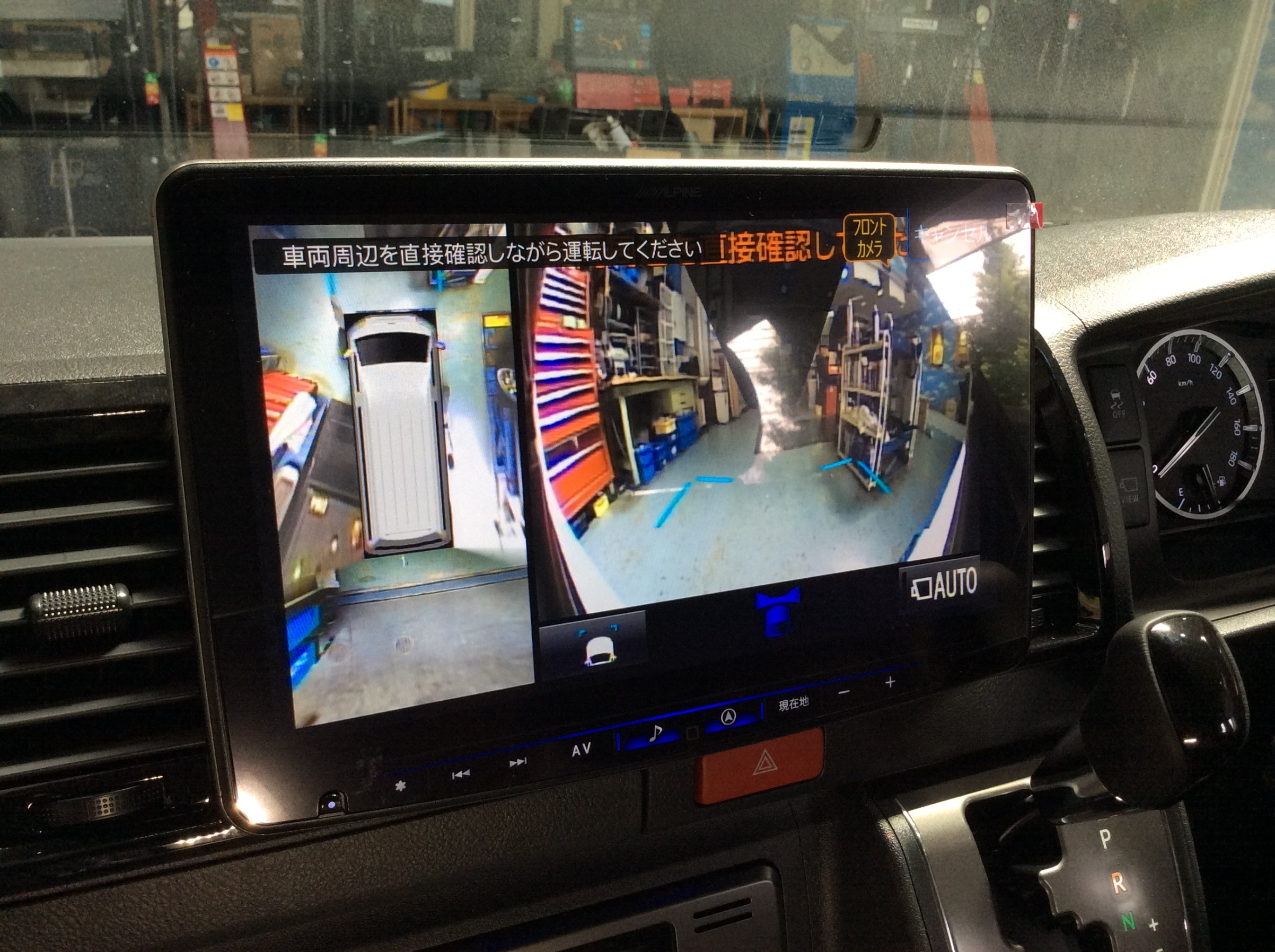 バックカメラは当然映りますが、モニターが付いたことで、ようやくフロントカメラやサイドカメラも映り、パノラミックビューが活躍できます。