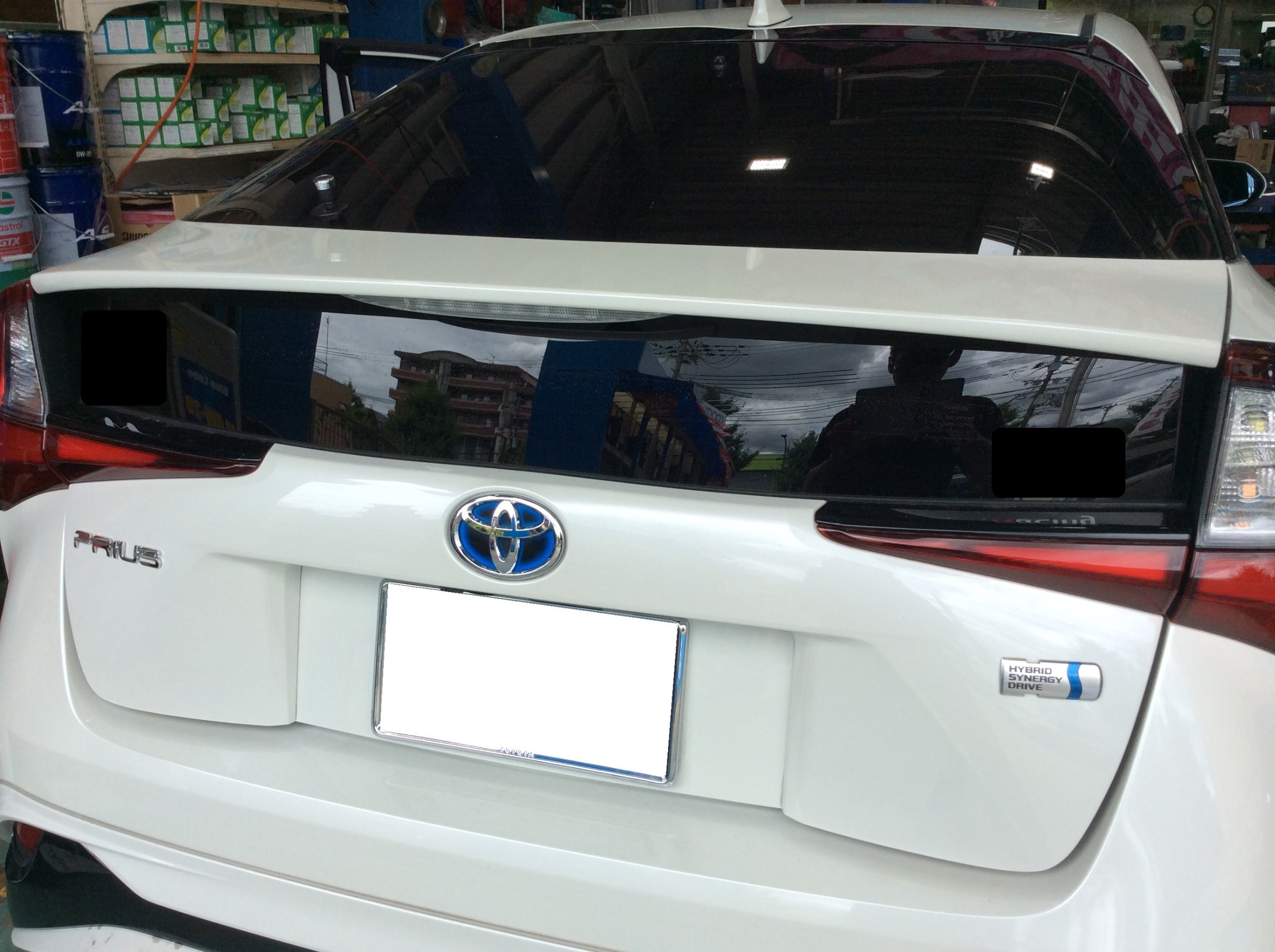 50系プリウスの場合、リアカメラは下側のガラスに貼らせていただいた方が後方が映りやすいので