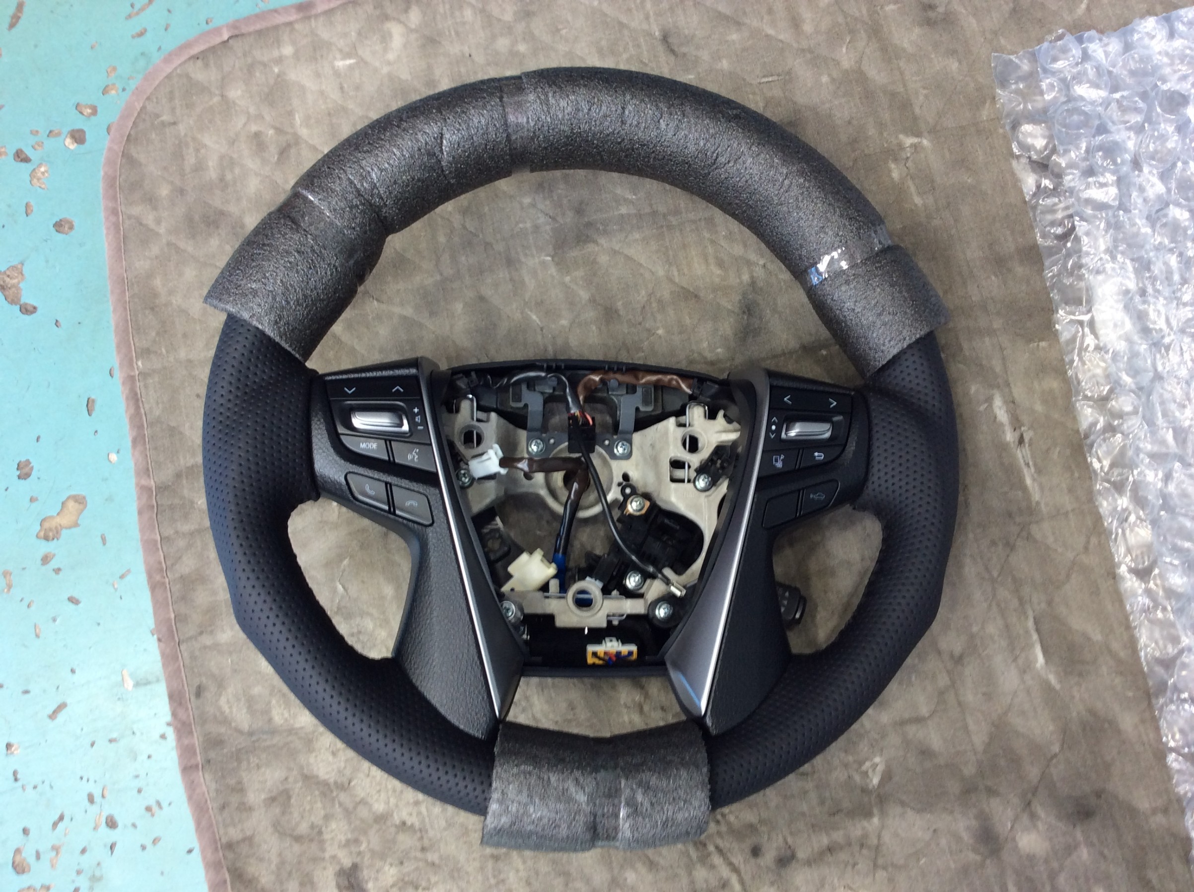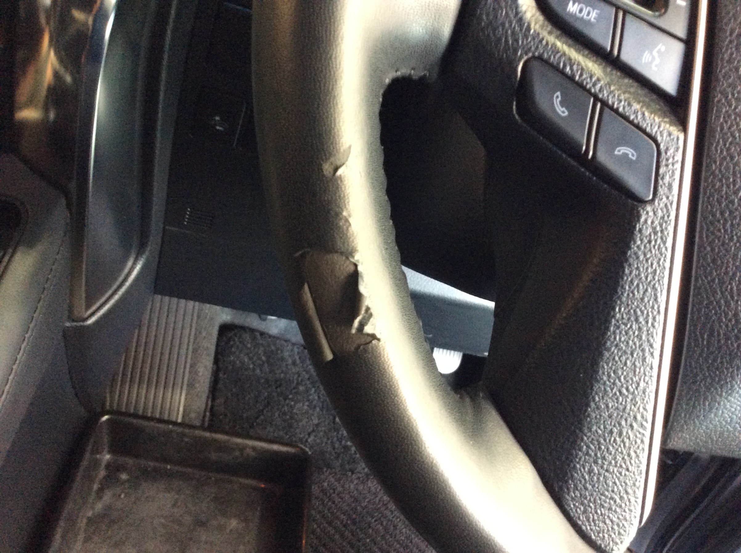 純正のステアリングの一部の表皮が破れてきました。