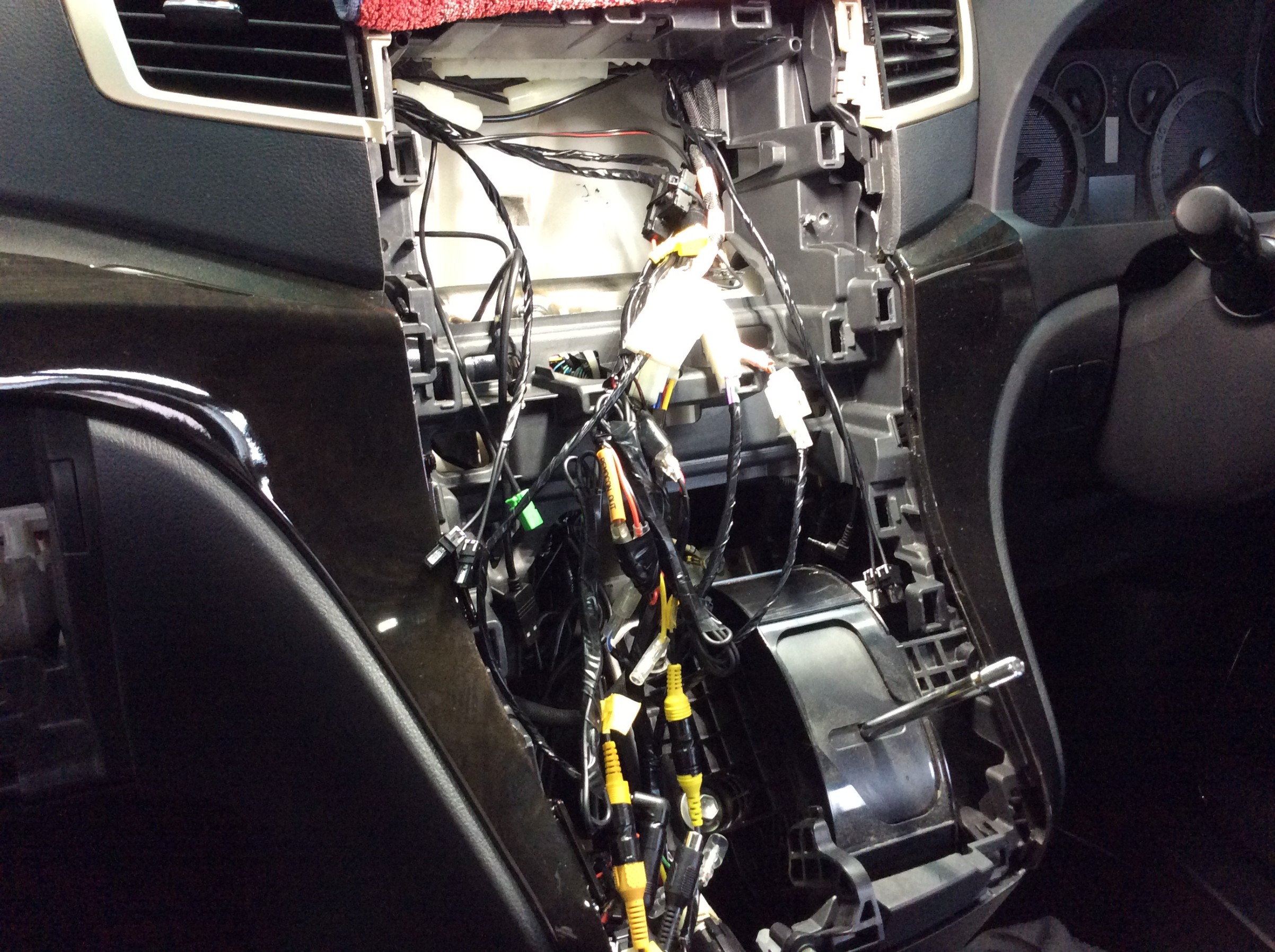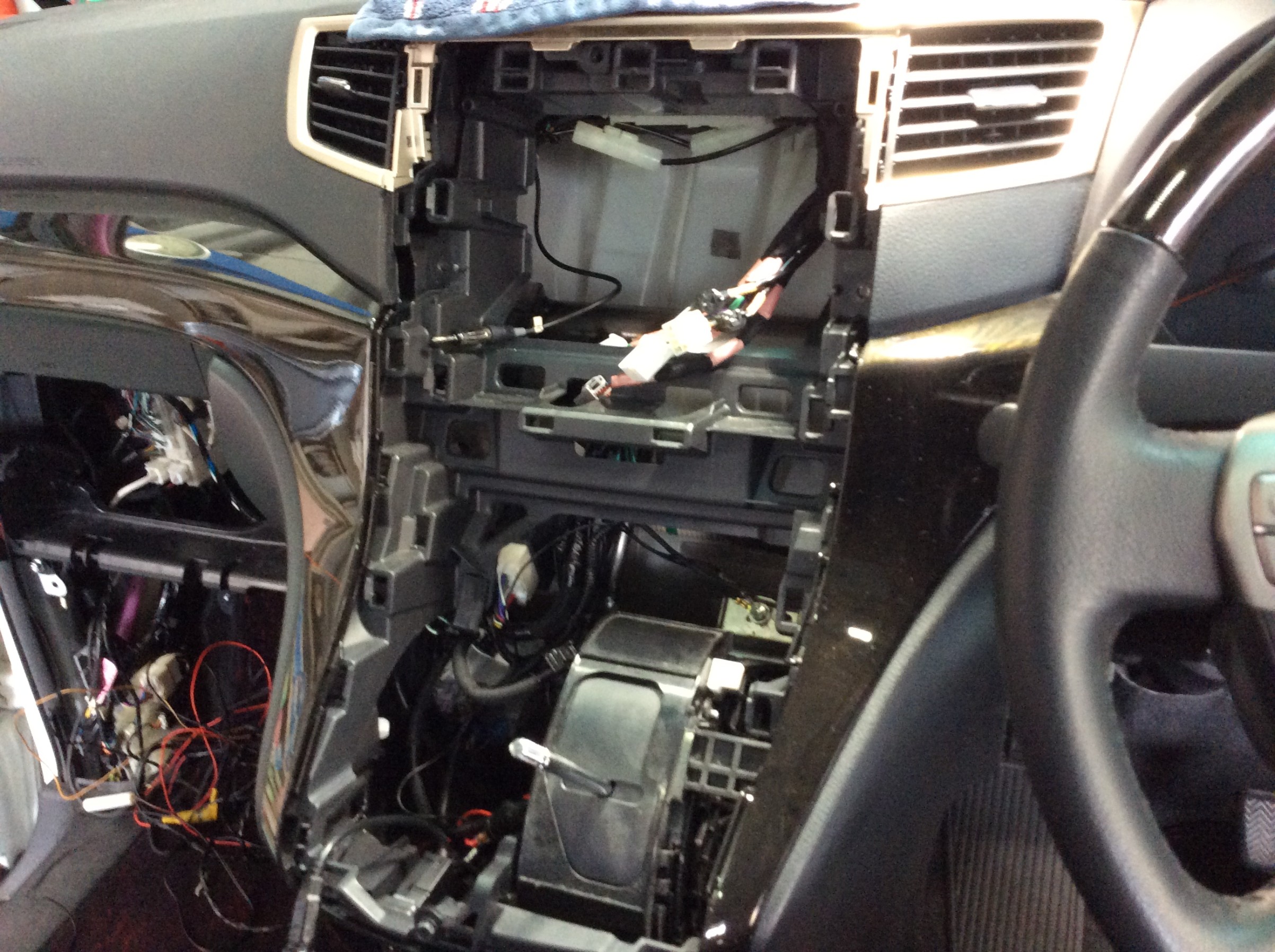 新たに今回取り付けるナビの配線を取り付けていきます。