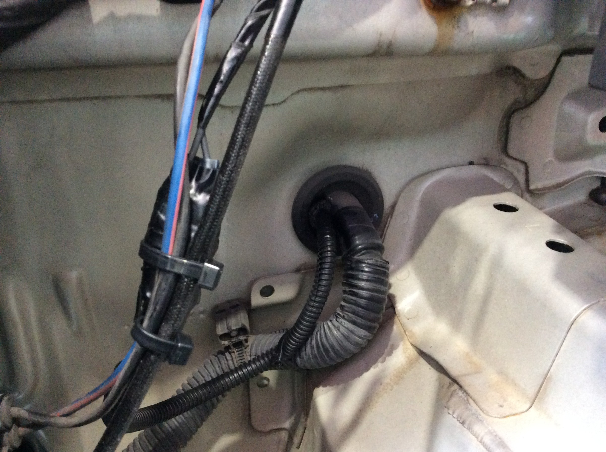 そして、3つのセンサーの配線と純正の配線に沿わせて車内にひいていきます。