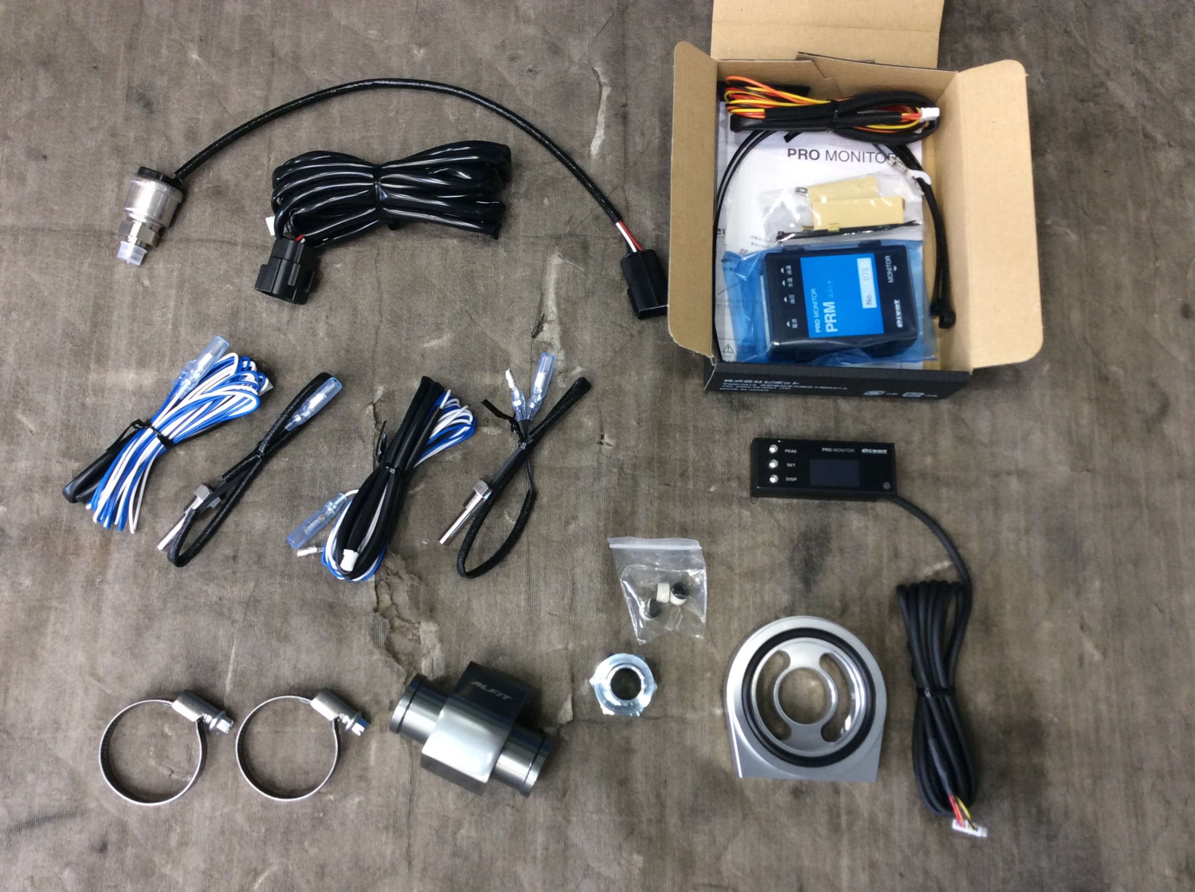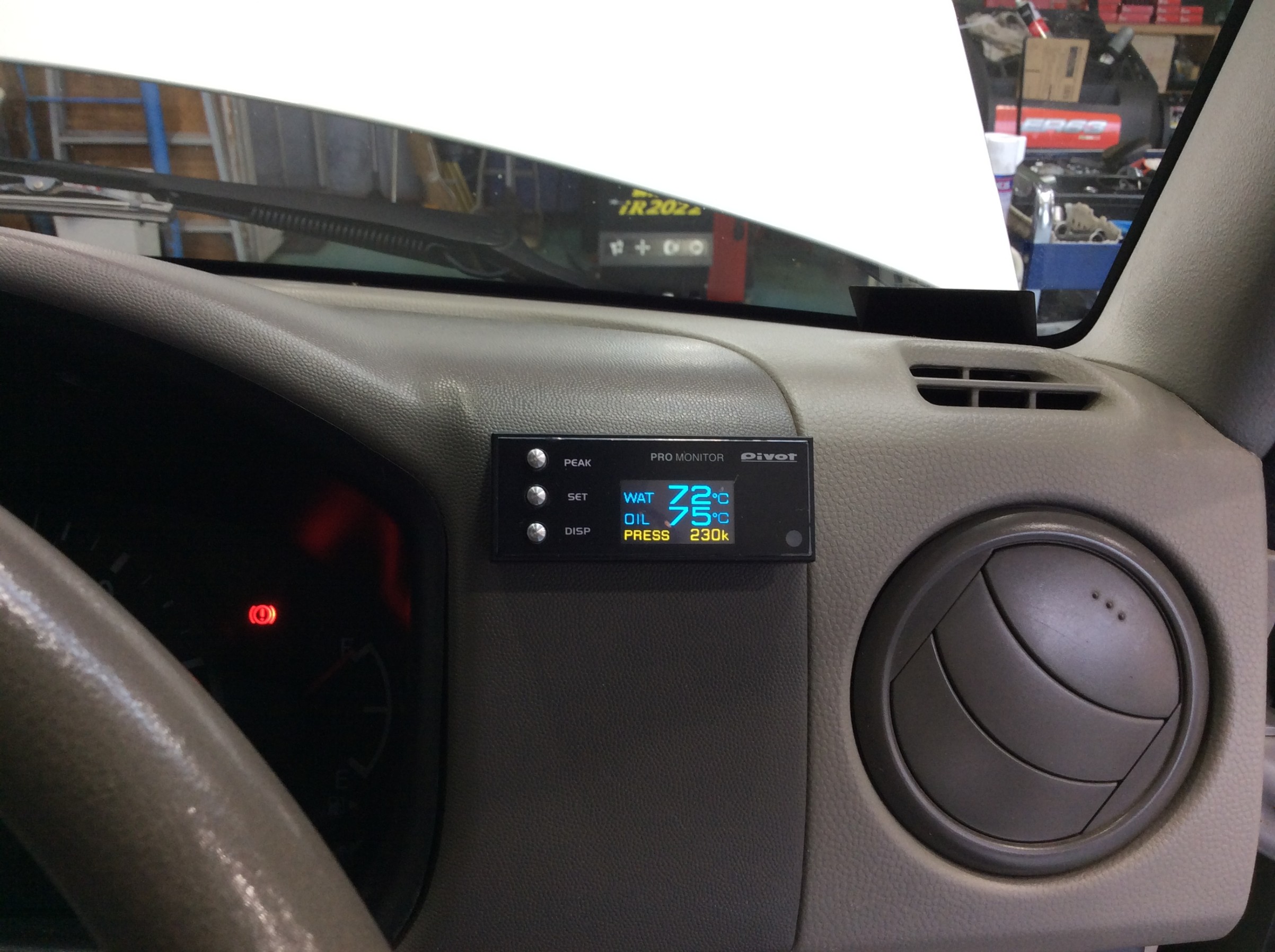 水温・油温・油圧管理の為にピボットさんのPRO MONITORを取付させていただきました。