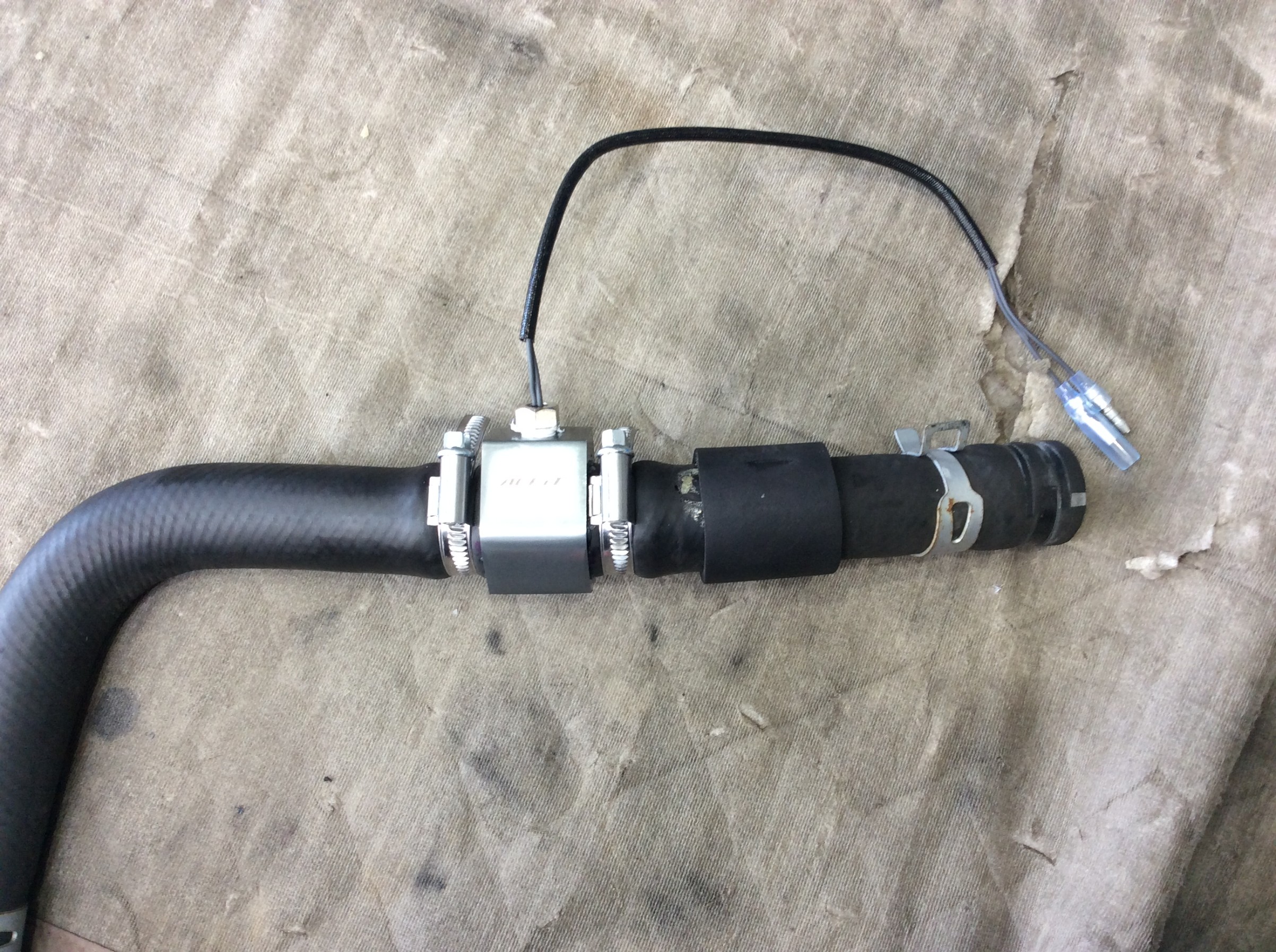 アタッチメント&センサーを取り付ける為に、カット部分に印をつけてホースをカットして取付させてもらいます。