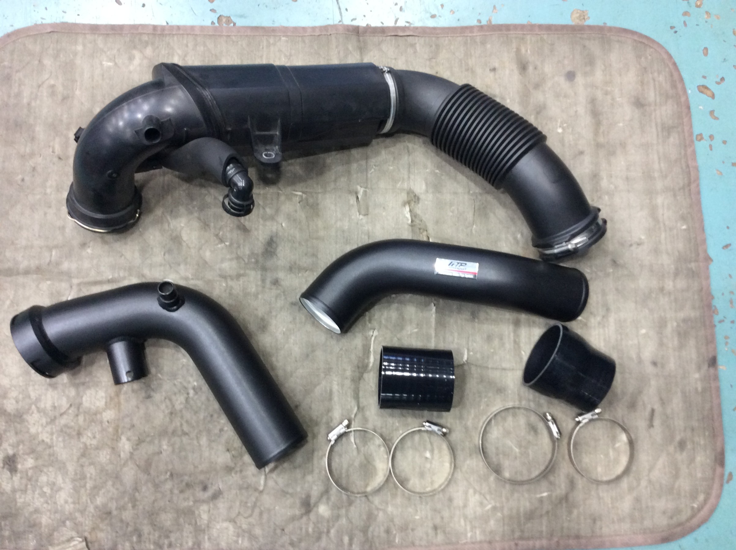 先日、チャージパイプ&ブーストパイプを交換させていただいたのですが、交換後にとっても効果を実感できたとの事で、前回同様にFTP motorsportさんのインテークパイプを追加で交換させてもらう事に。