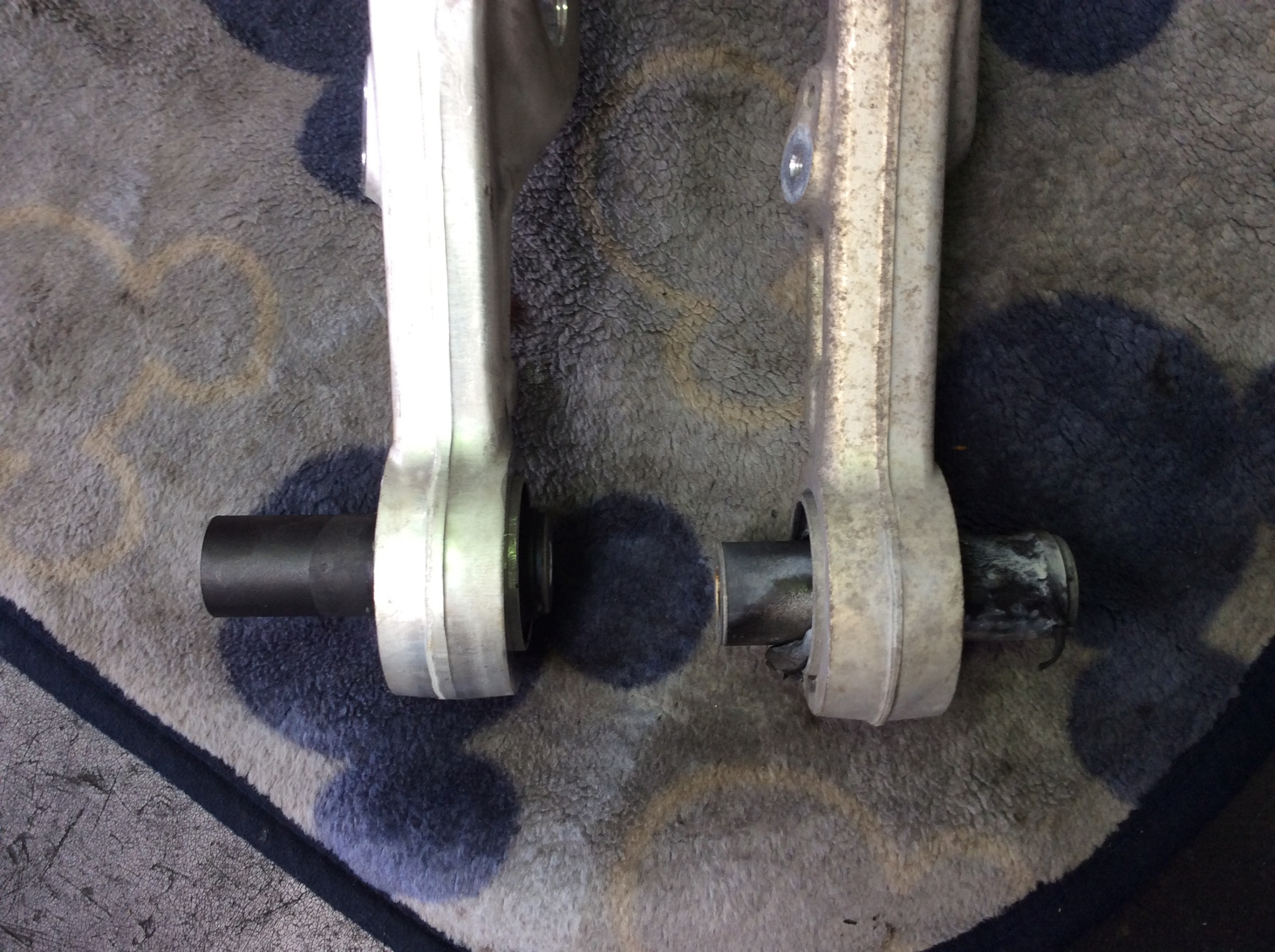 ブッシュに亀裂が入って取付位置がおかしい。