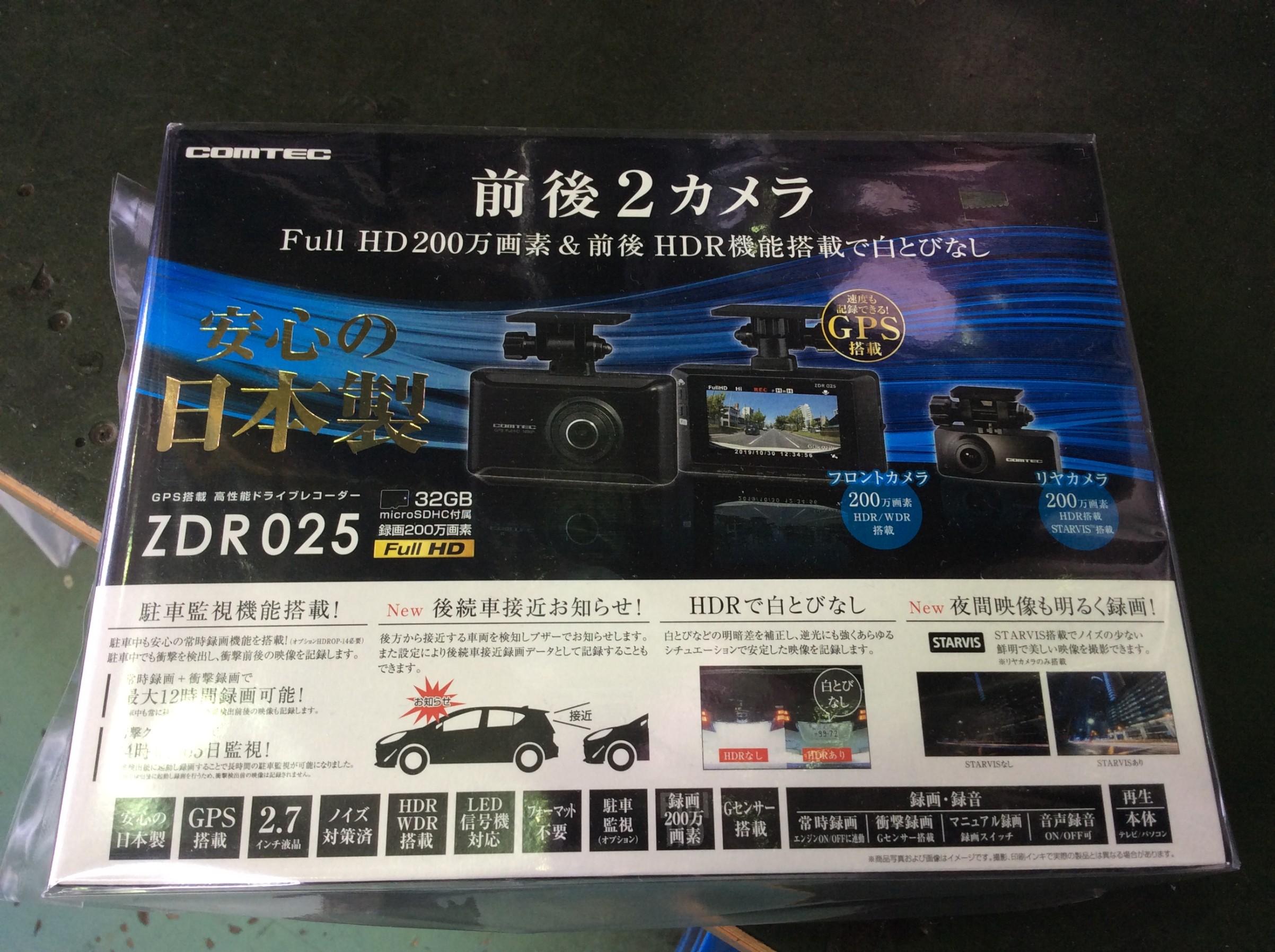 今回も当店一番人気のコムテックさんの前後2カメラのZDR025を取付させていただきました。