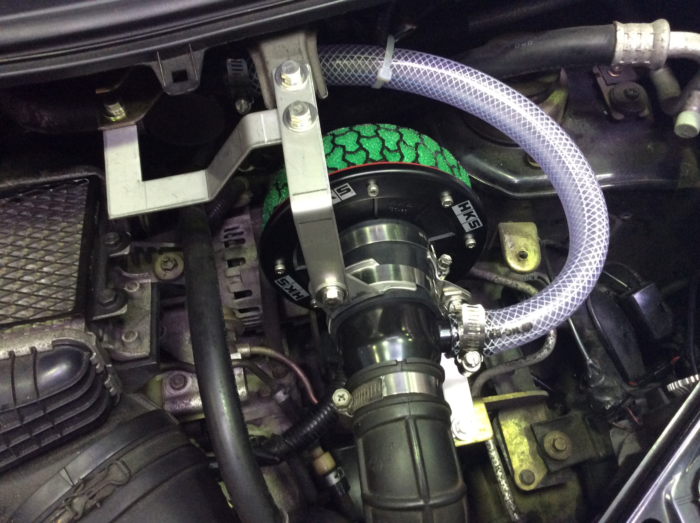 まずは吸気側はHKSさんのスーパーパワーフロー(通称:キノコ)を久しぶりに取付させていただきました。
