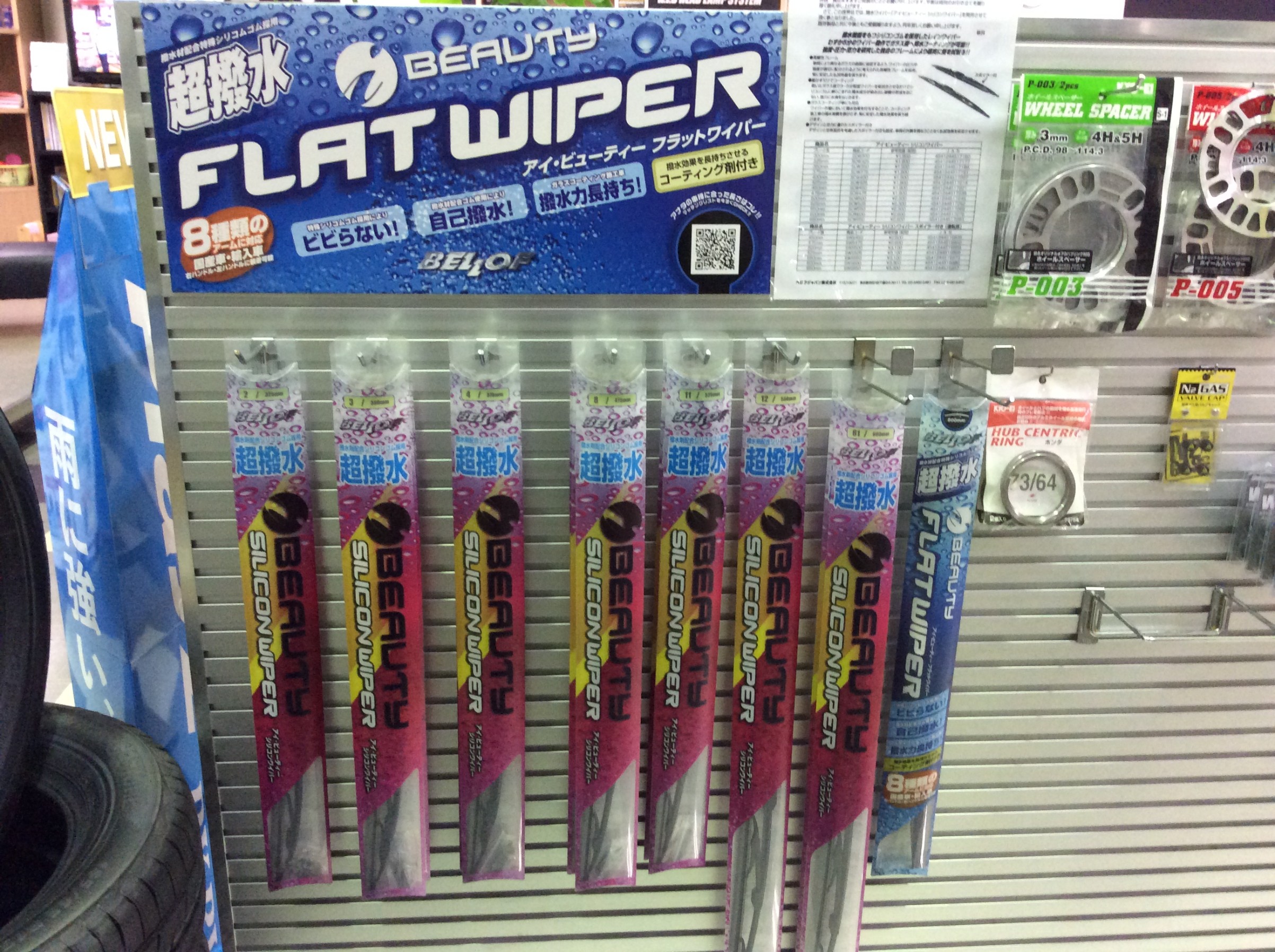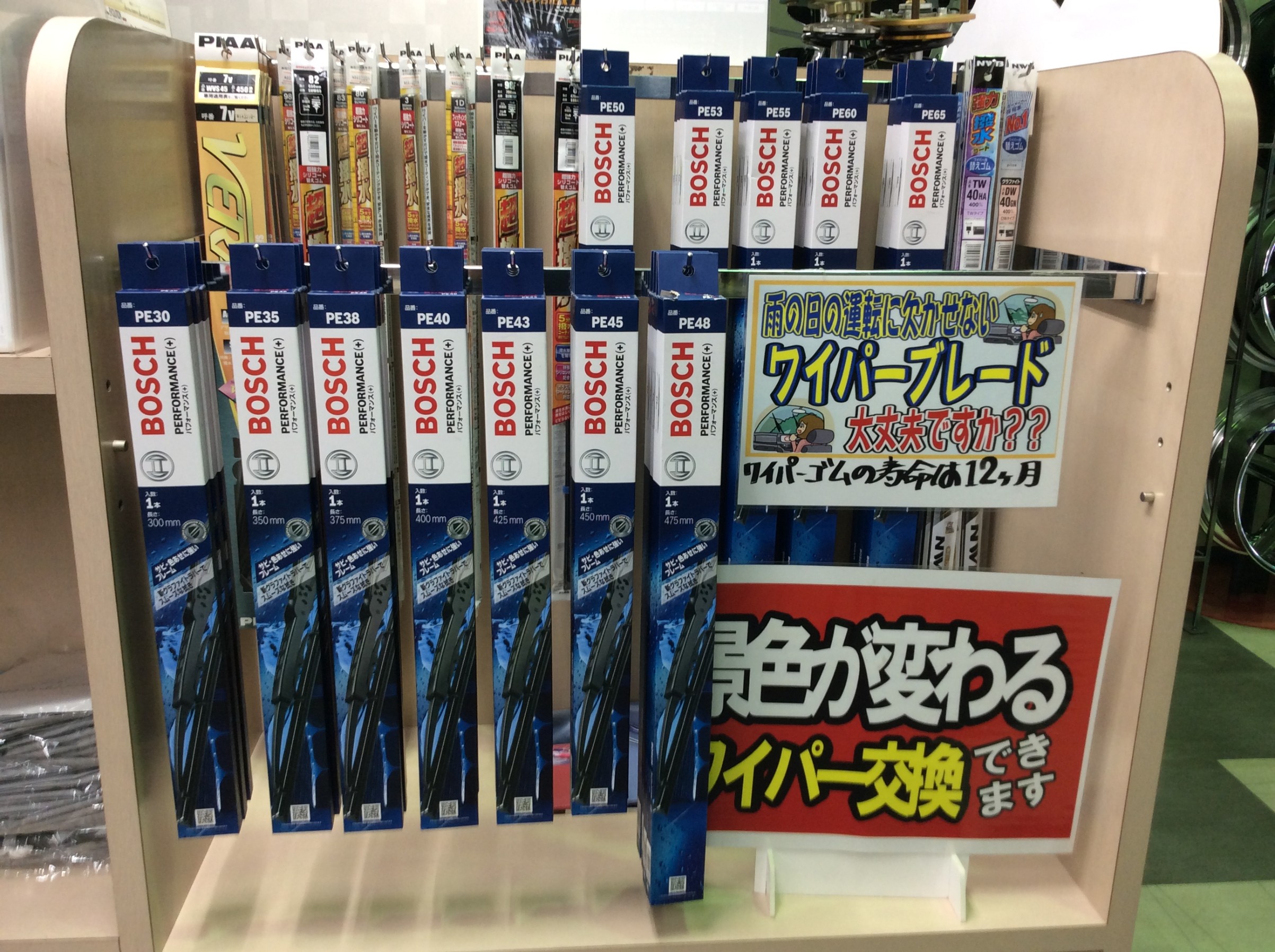 標準ワイパーから撥水ワイパーと各種サイズも揃えております。