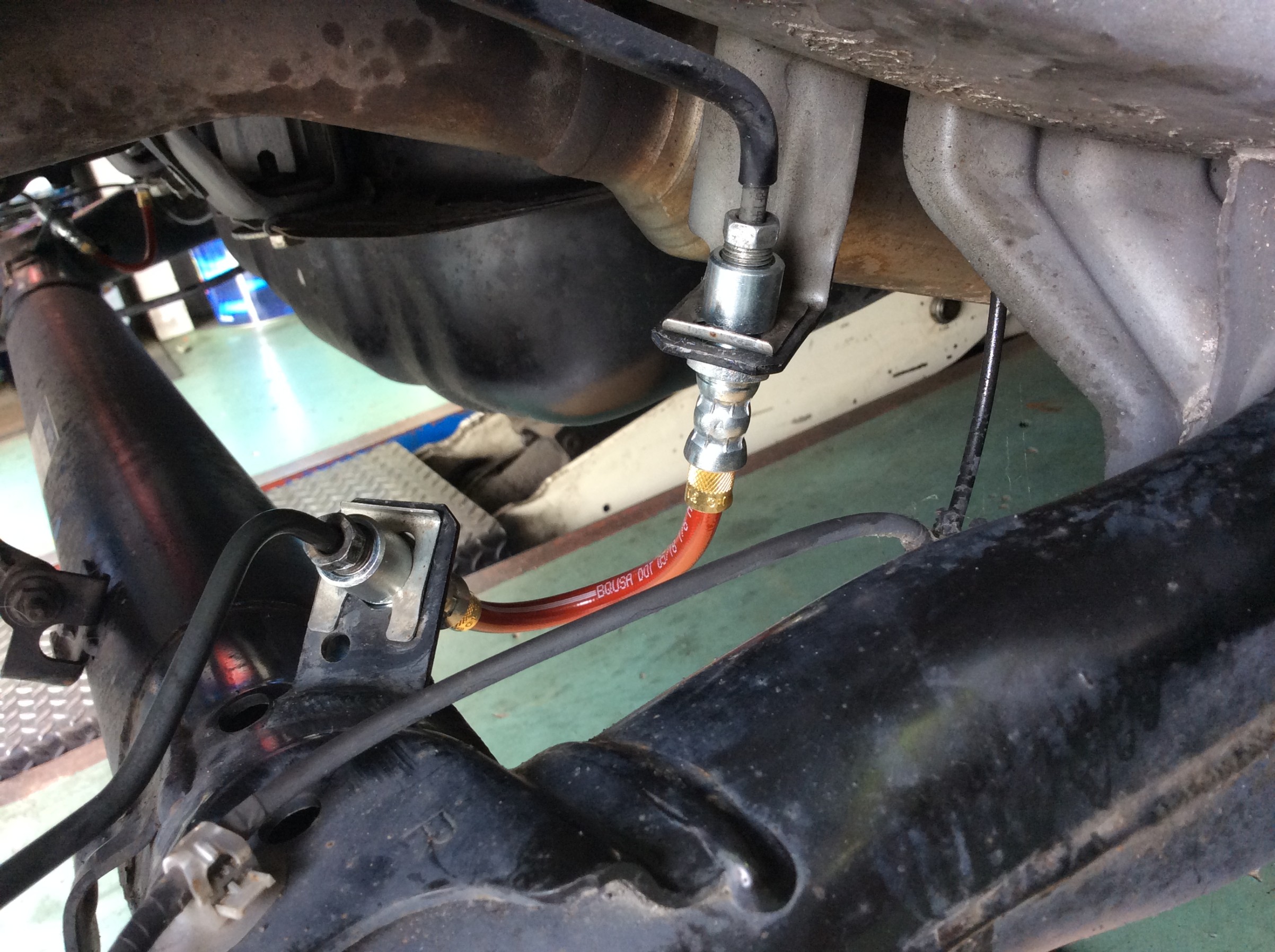 ブレーキラインも交換させていただきましたので、ブレーキオイルのエア抜きもキッチリさせていただかなくては・・・