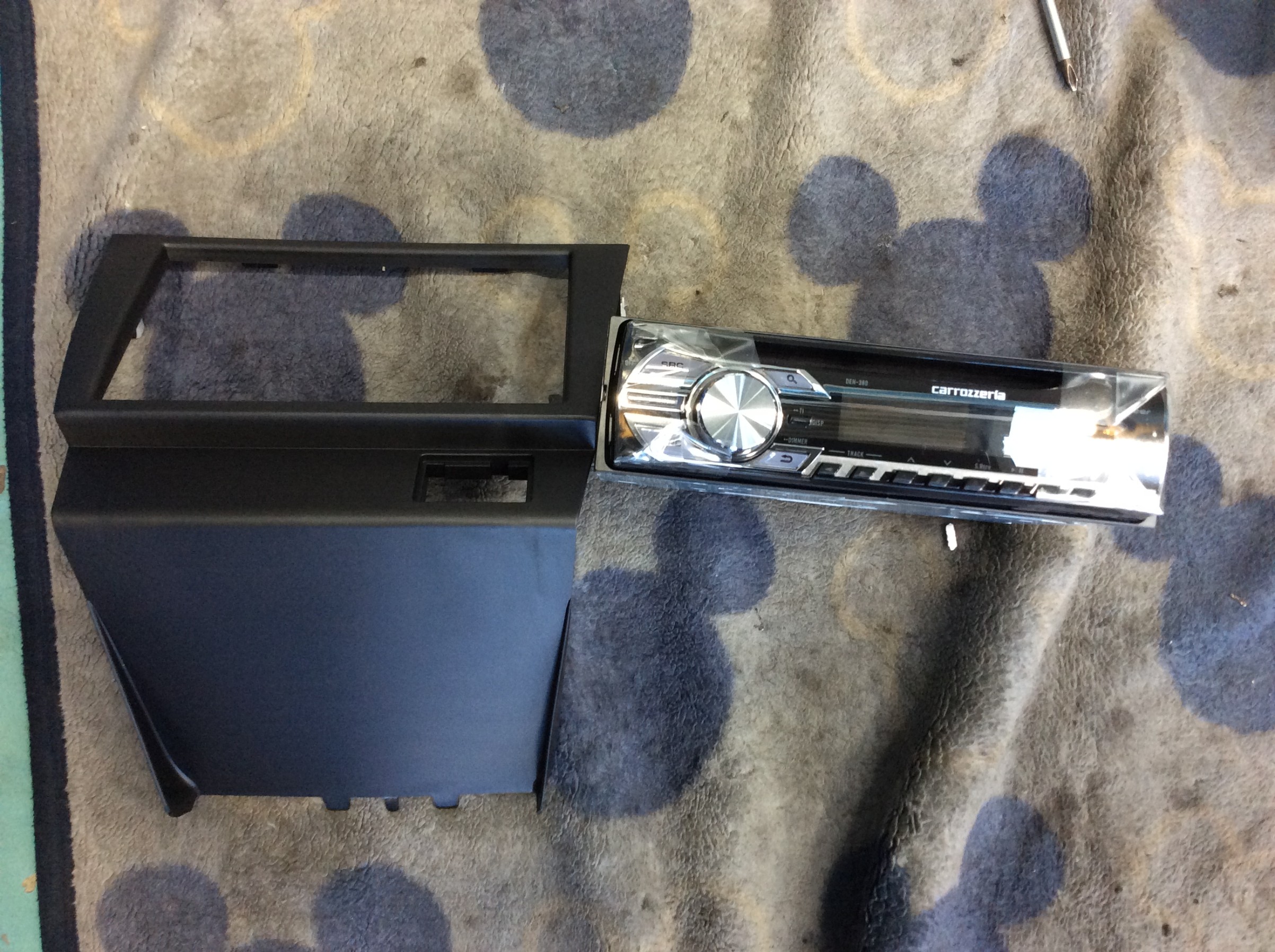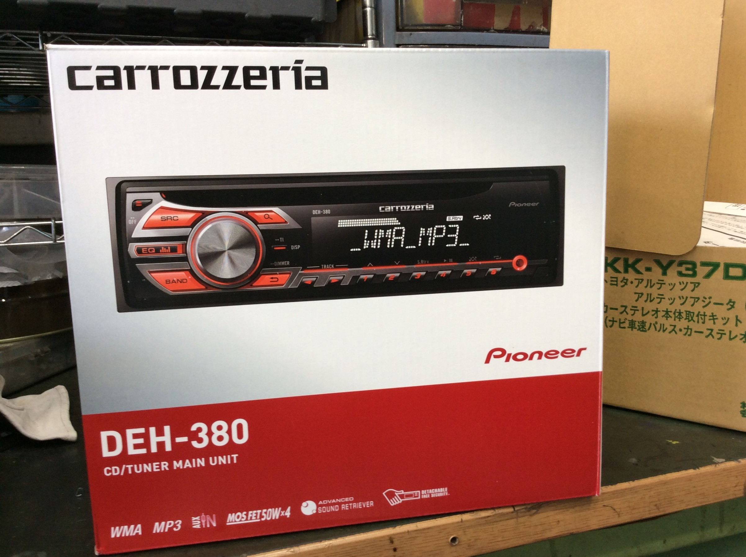パイオニアさんのCDデッキ「DEH-380」と取付キットを使い交換します。