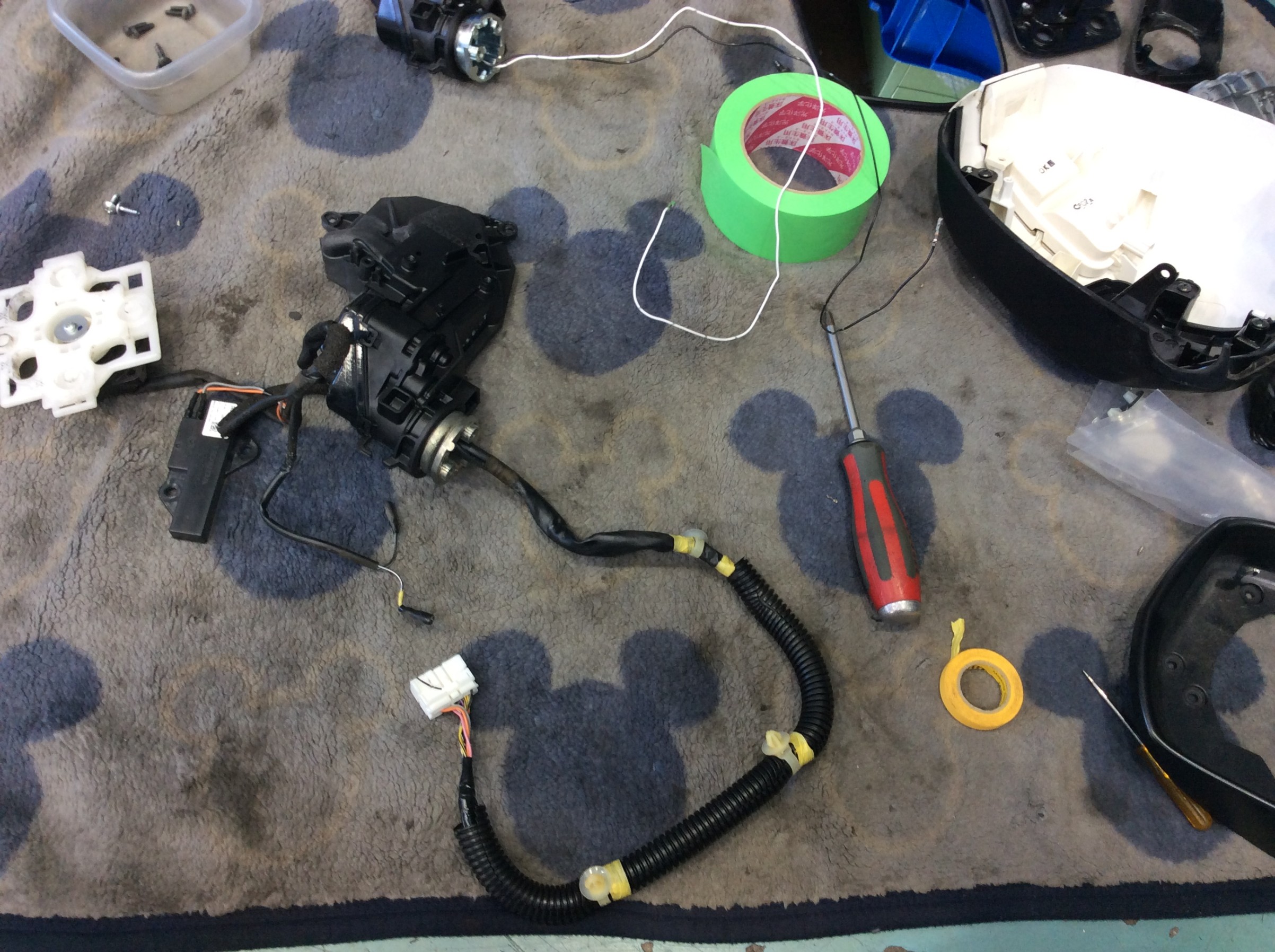 バラバラにした状態で格納モーターのみを交換して、バラバラにした逆手順で元通りに戻していきます。