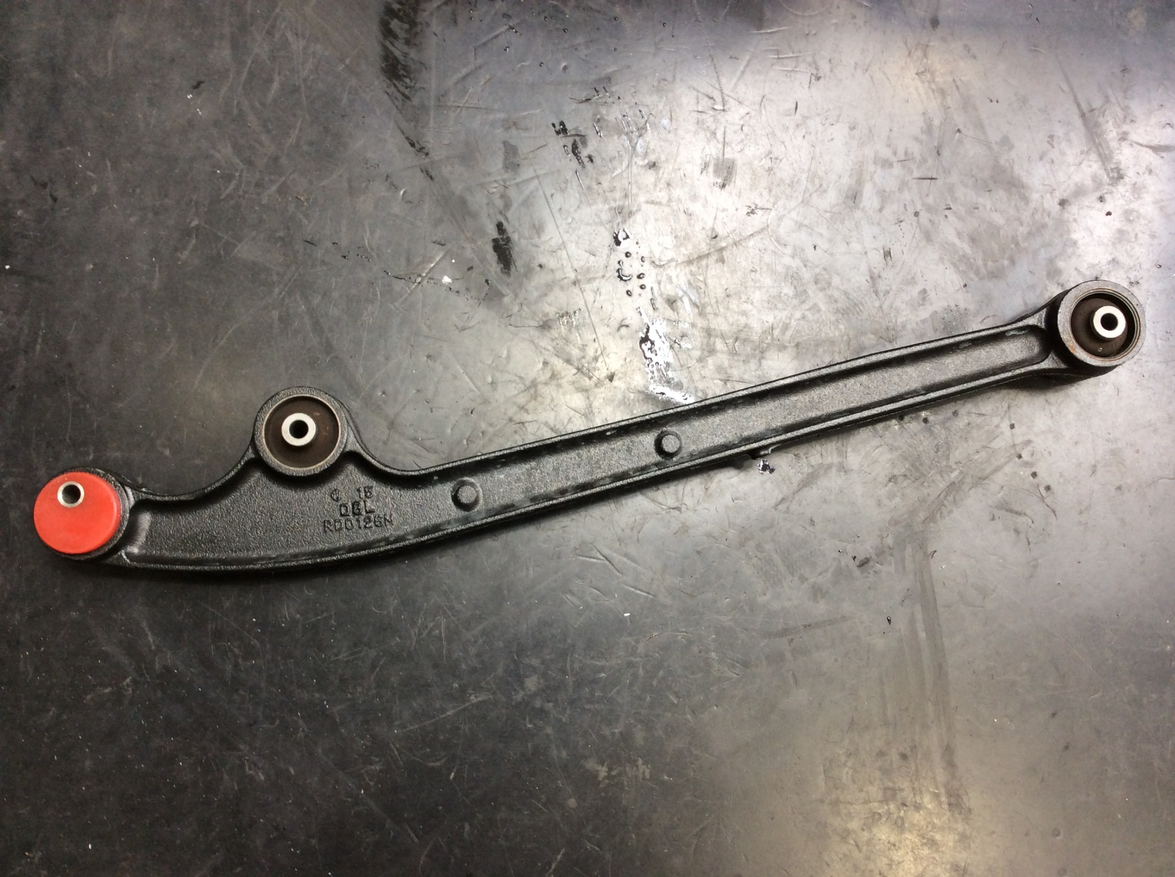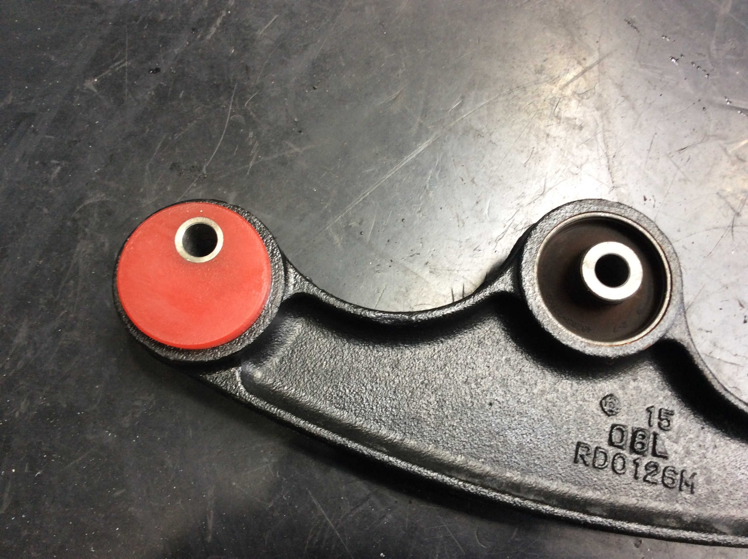 フロントはリフトアップに伴い狂ってしまうキャスター角を補正する為に、リーディングアームの前側のブッシュを交換します。