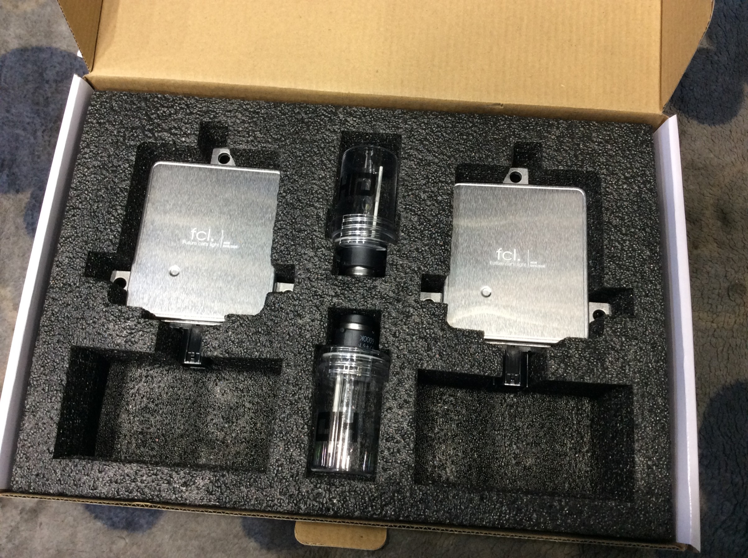 そこで純正の一個のバラストより安く済んで、今までより明るくなるfclさんの45W化パワーアップキットを取り付ける事にしました。