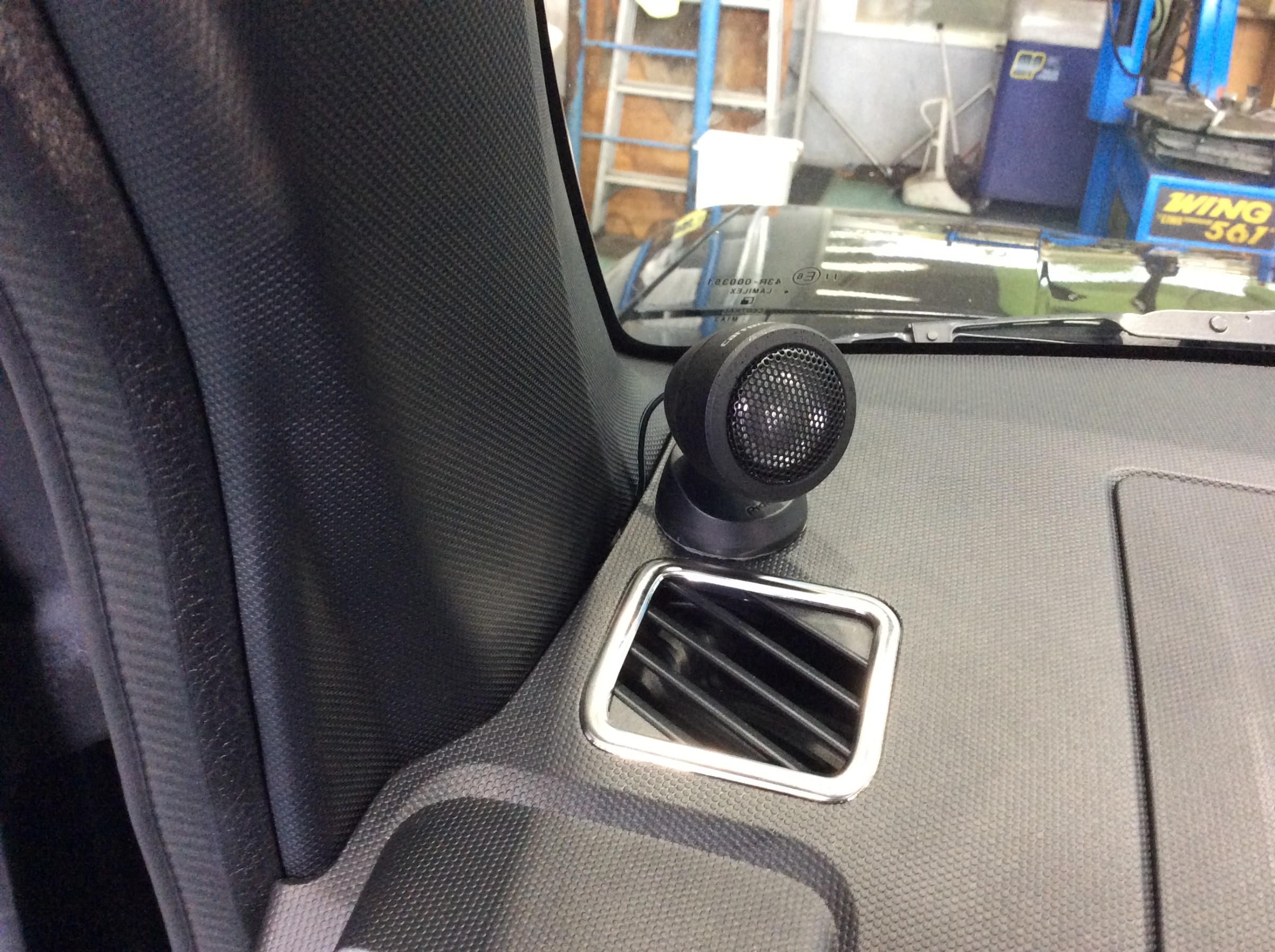 フロントスピーカーはセパレートタイプなので、ツイーターはダッシュボード上に設置。
