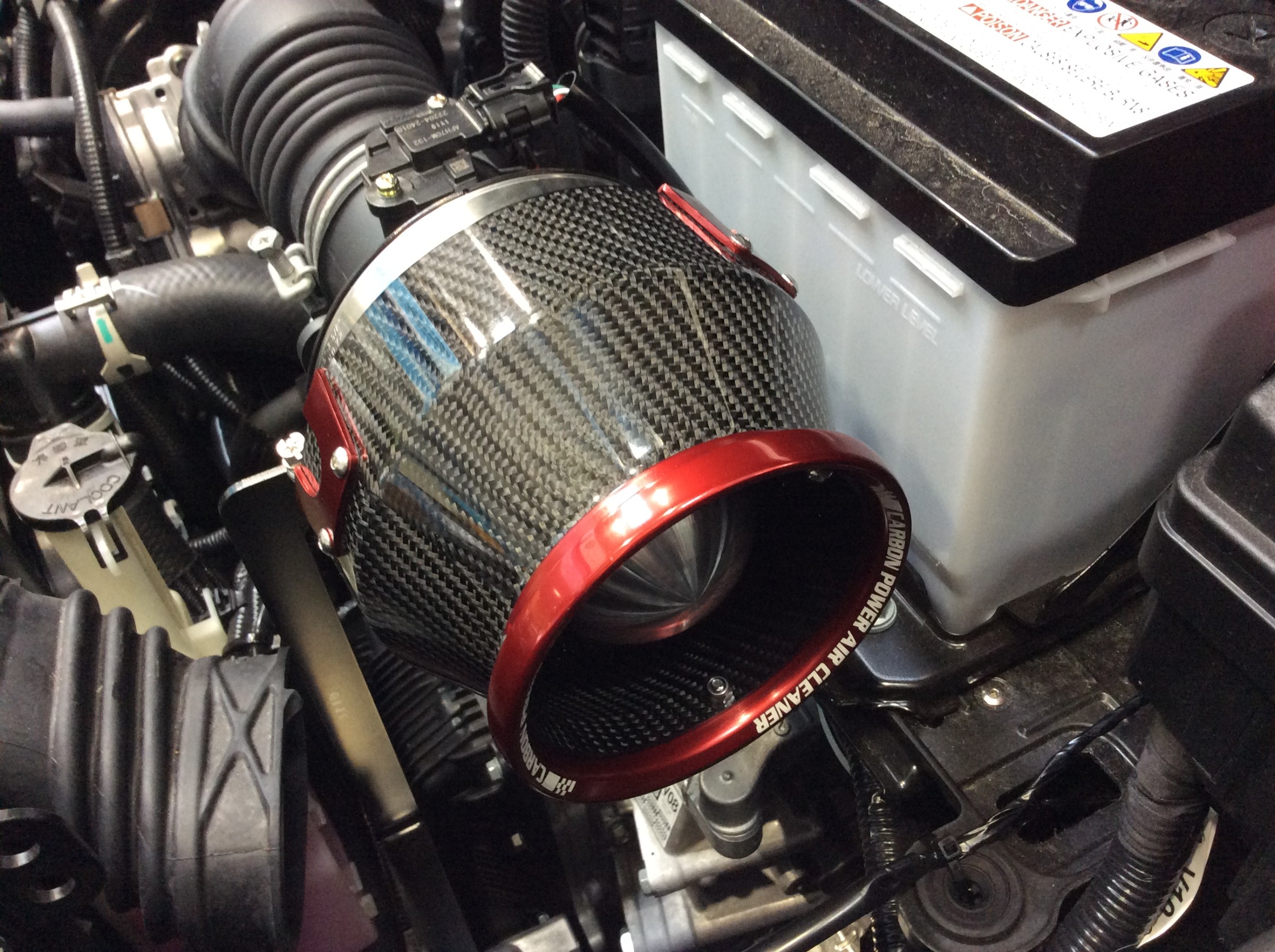 Power Con NAを取り付けるのなら同時に吸気の方も変更したいとの事で、CARBON POWER エアインテークも取付しています。