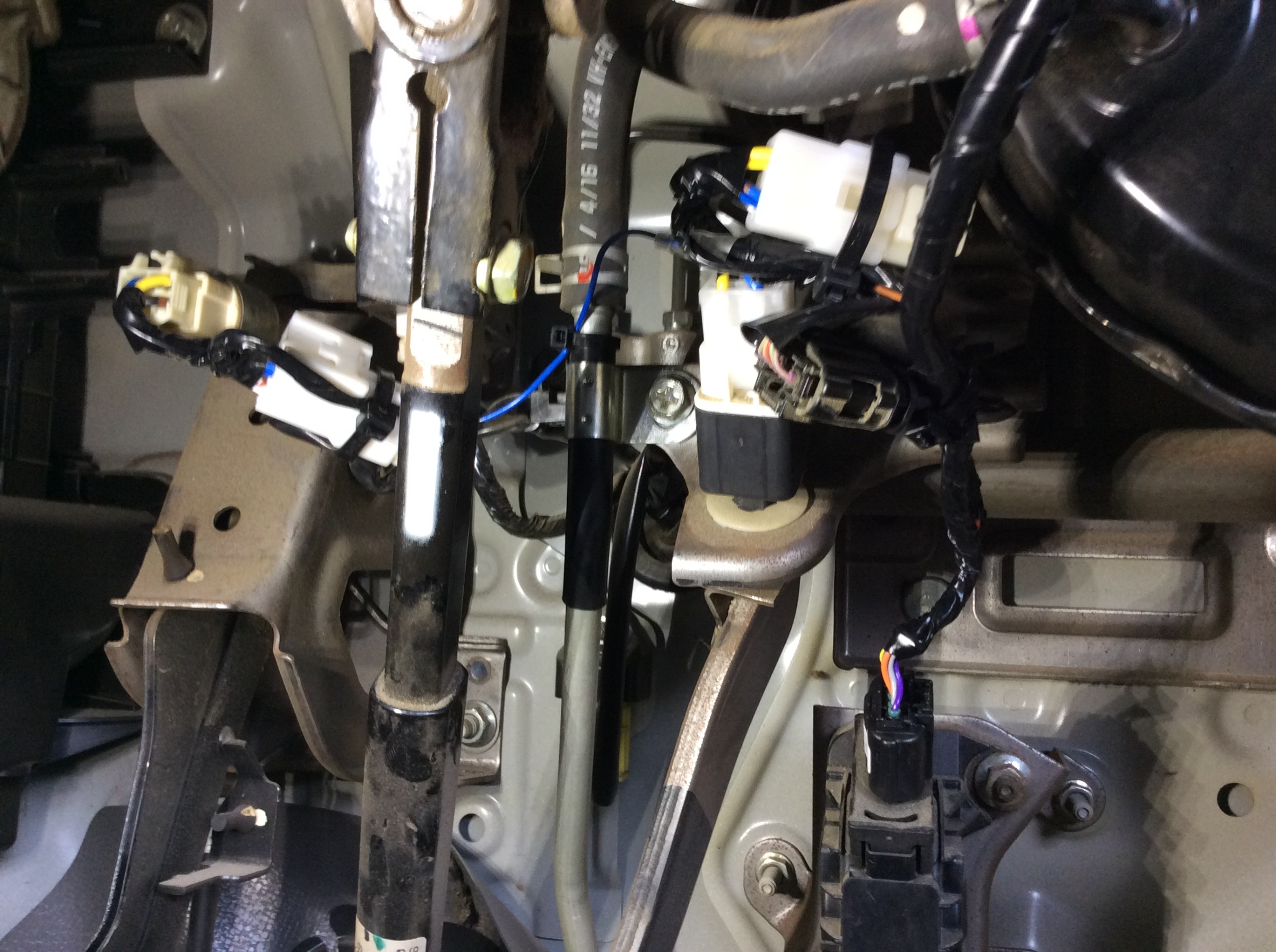 車種専用ハーネスとブレーキハーネスに加え、M/T車なのでクラッチアダプターも取付しております。