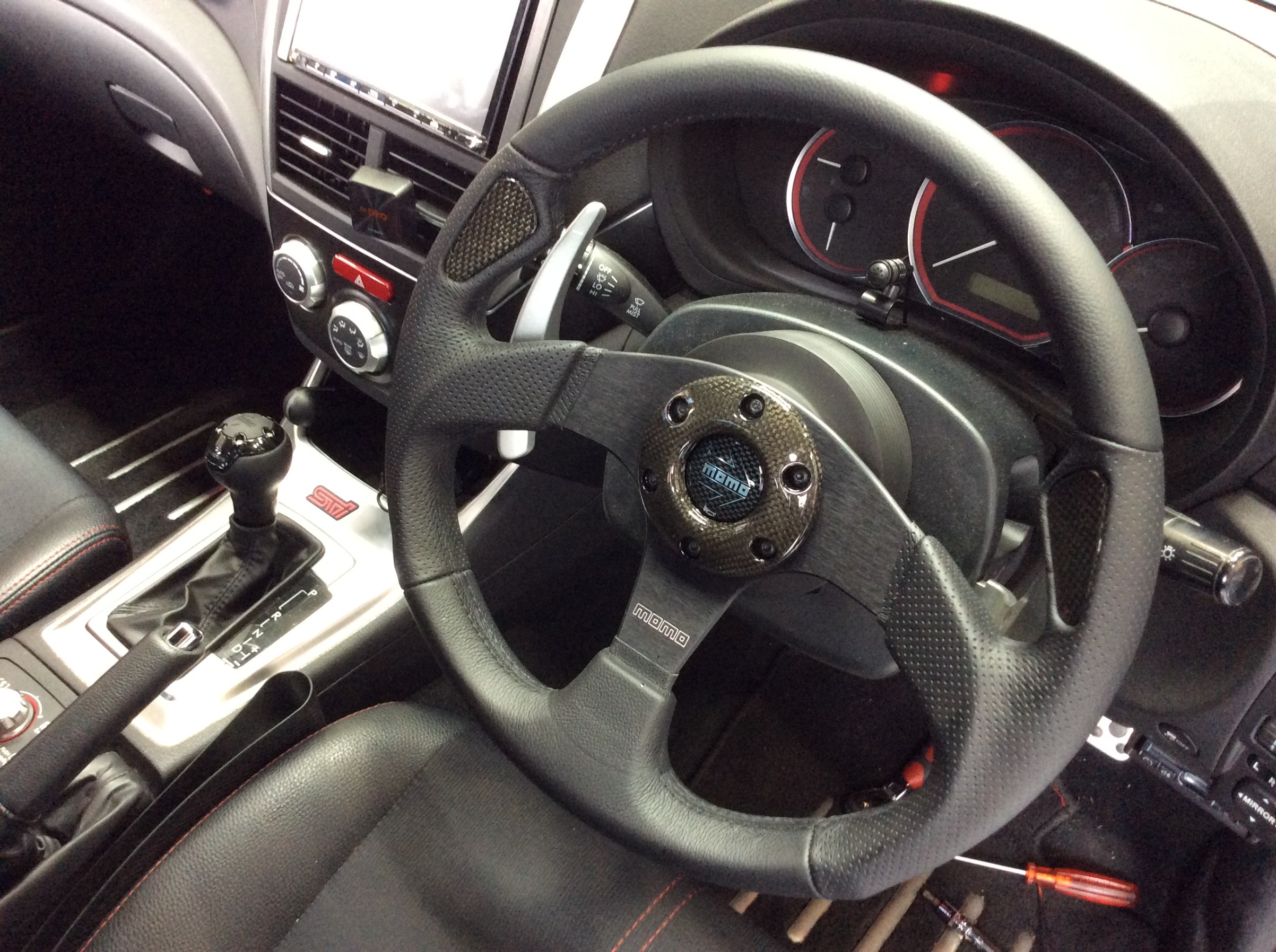 ステアリングをmomoにするのならと、シフトノブもそろえてmomoさんのNEROに交換しました。