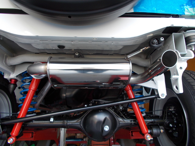 K6Aターボエンジンの能力を最大限発揮させるストレート構造サイレンサーを採用。 外観を損なわず、デパーチャーアングル、及び車体・タイヤとのクリアランスを確保させるため、専用設計センターパイプを採用するとともに、テール径・位置を最適化。さらに、マフラーの揺れを抑えるため、マフラーハンガーについても最適化を行いました。 センターパイプ、及びメインマフラーの素材には腐食に強いステンレスSUS304を採用。 走破性を確保するため、マフラーテール位置をノーマルより高く設定していますので、スズキスポーツウレタンバンパー専用品になります。