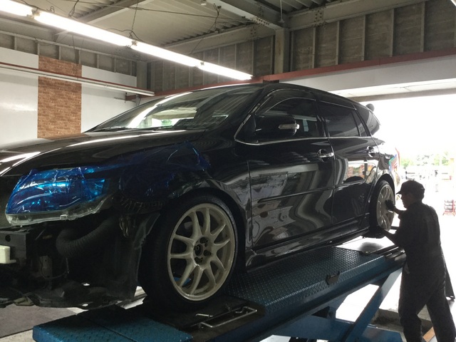 しかし、リフトに車を入れようとした時、車高が低くて入らなかったので、バンパーを外してからの作業になりました!
