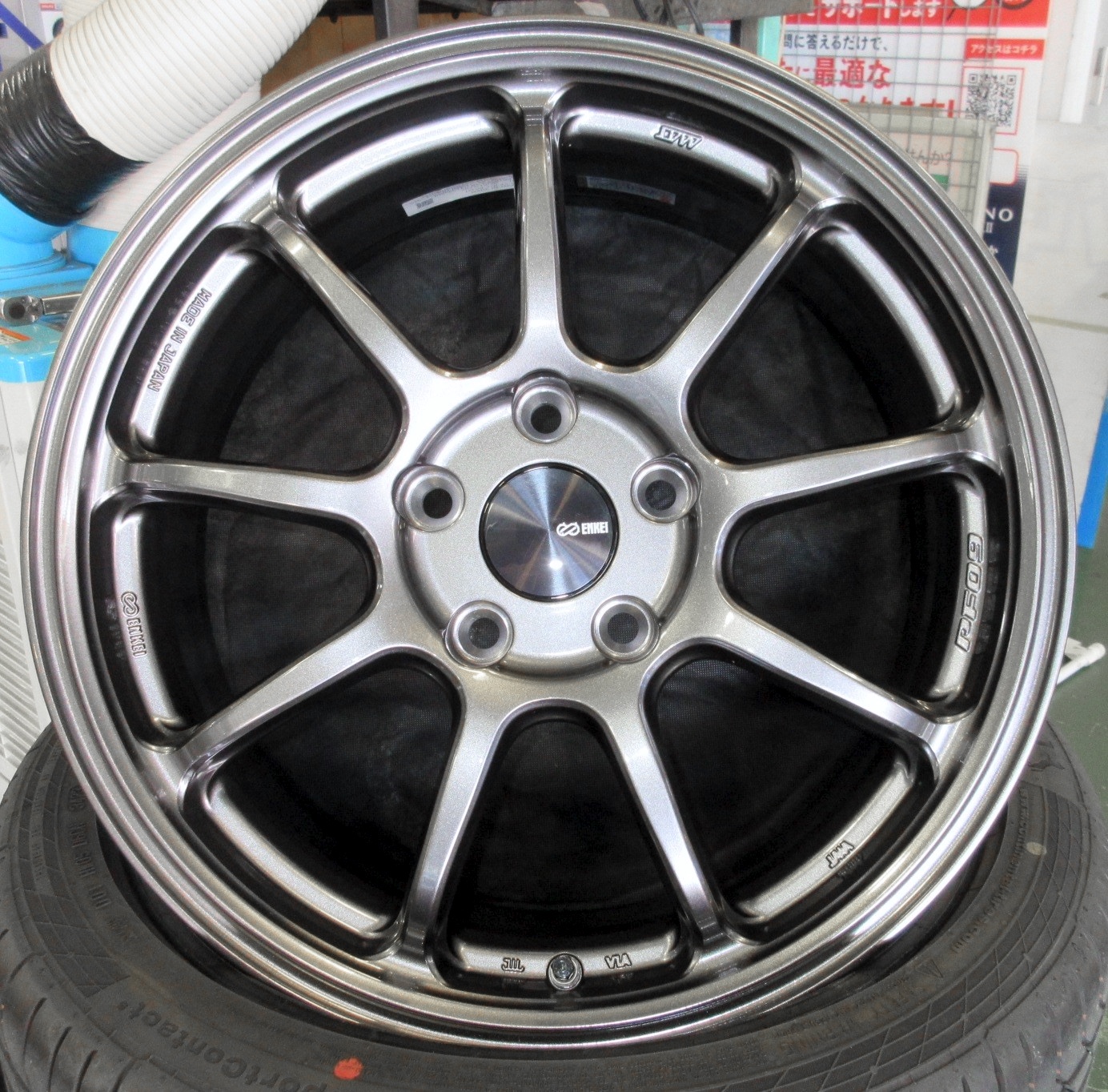 ホイールはシンプルな9スポークデザインのスポーツホイール『ENKEI PF09』を採用し、装着済みのスポーティーな外装も相まって一気に全体の雰囲気がスポーティーになりました。