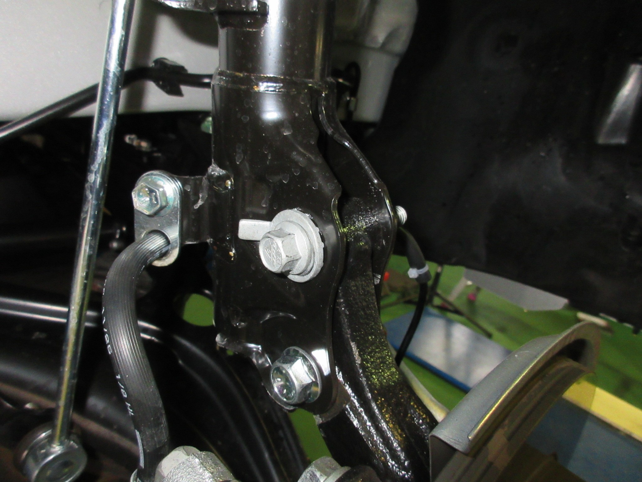 フロントにはキャンバーボルトを装着して、標準よりもネガティブキャンバーにセッティング
