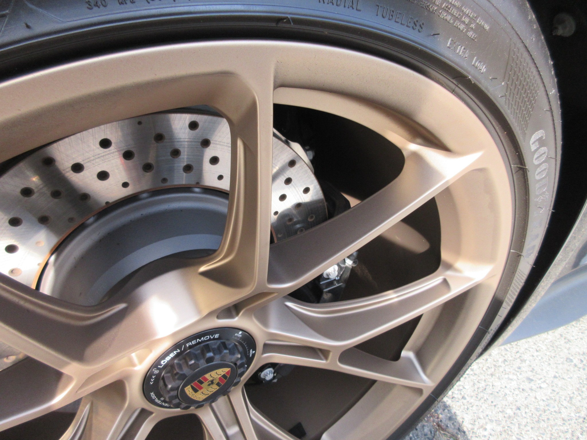 タイヤ・ホイールはスーパーカーならではの大口径サイズで、センターロック方式です。