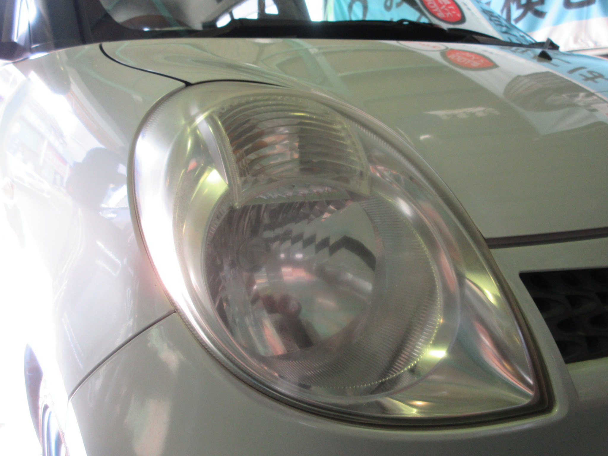 コチラの画像では分かり辛いですが、そこそこヘッドライトレンズが白く曇ってます。