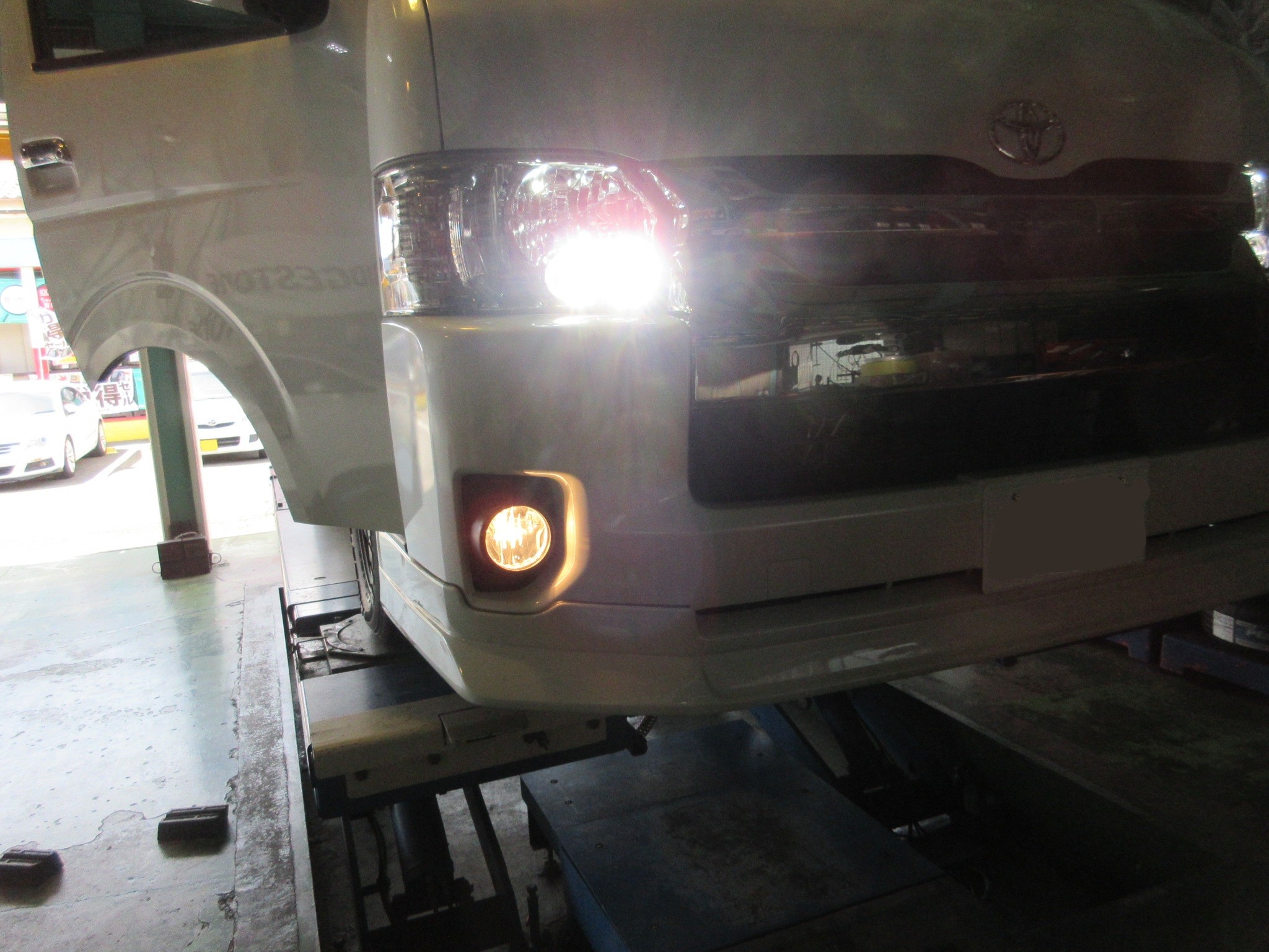 200系ハイエースにLEDフォグランプを取り付けます。