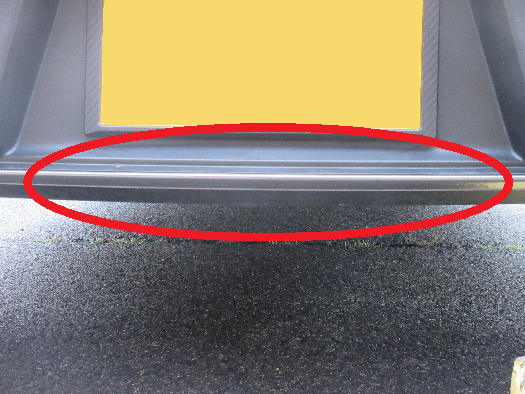 ただしそのままではバンパーとマフラーが干渉してしまうので、バンパーの赤丸部分を一部加工してのマフラー交換となります。