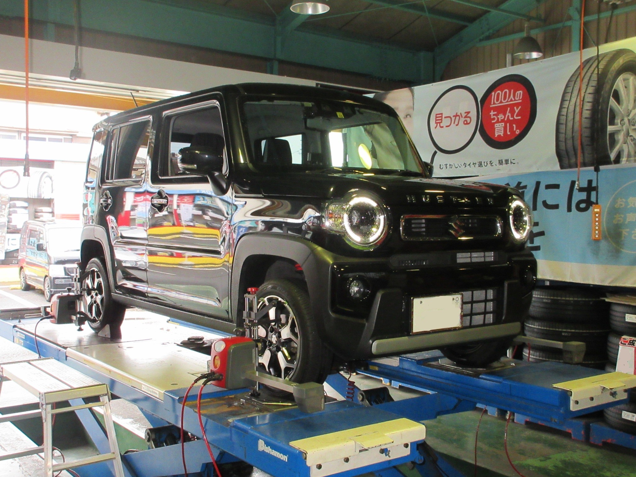 ハスラー(MR92S)のアライメント調整作業です。