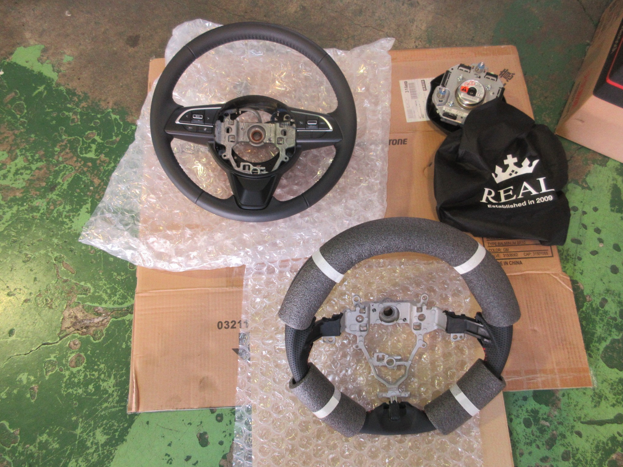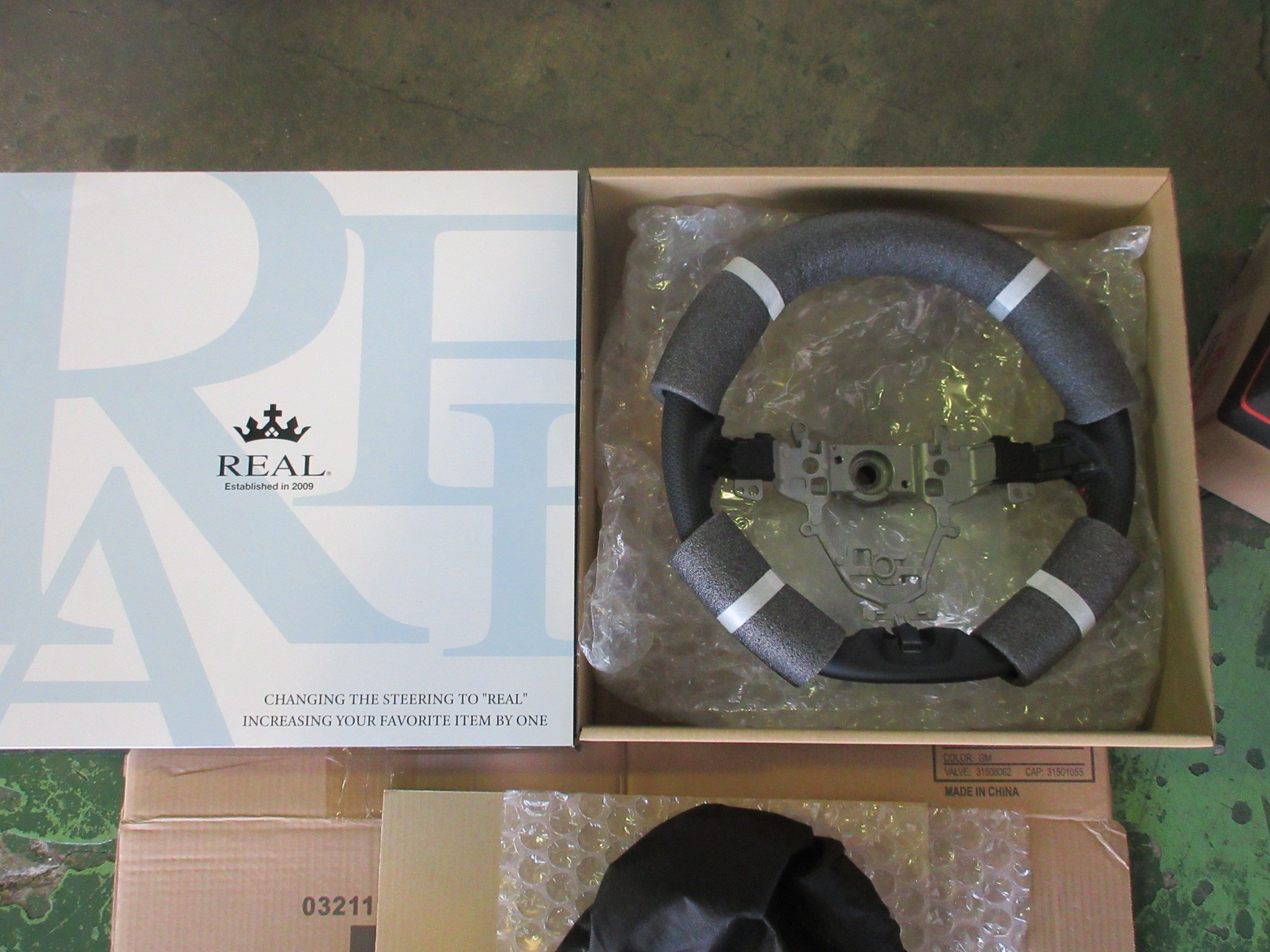 という事で、箱を開けてもまだ全貌が見えませんが、純正エアバッグ流用ステアリングと言えばやっぱりコレです。