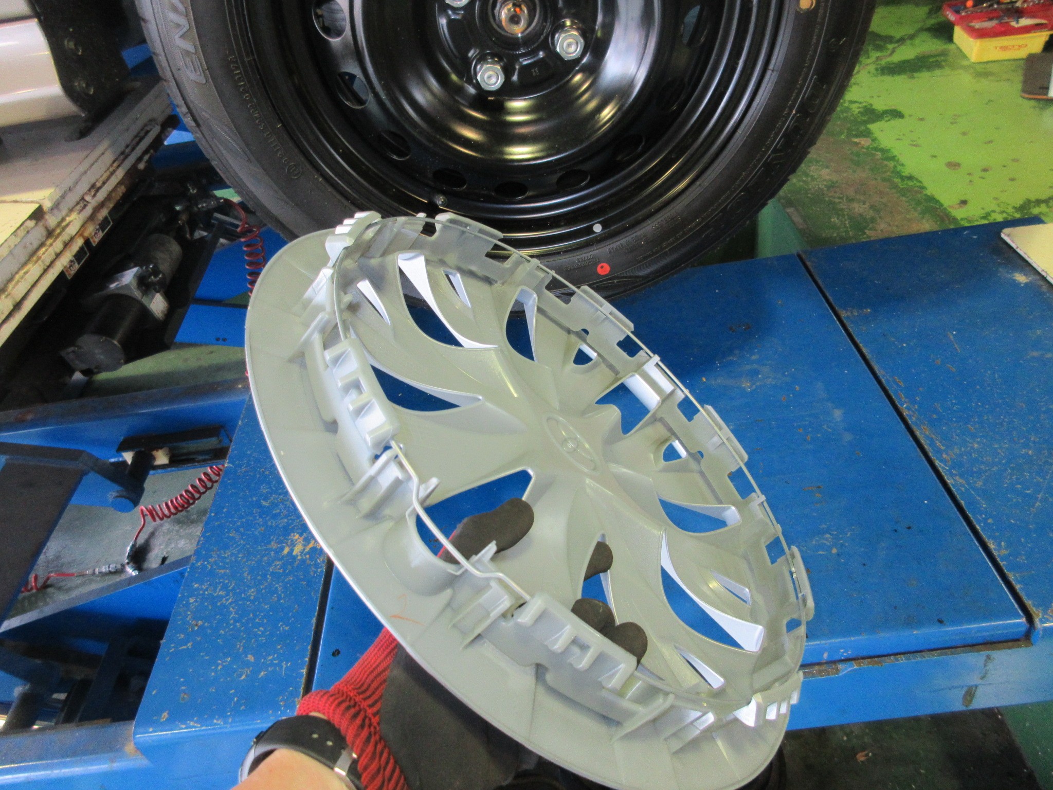 ホイールカバー+鉄チンホイールという、ベースグレードなんかでは特に多い仕様なんです。