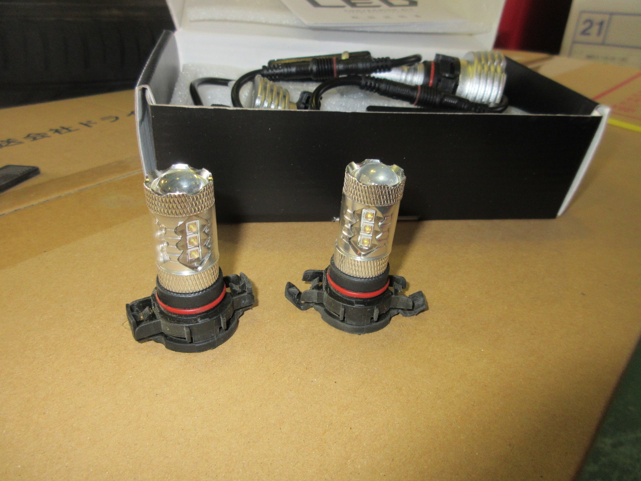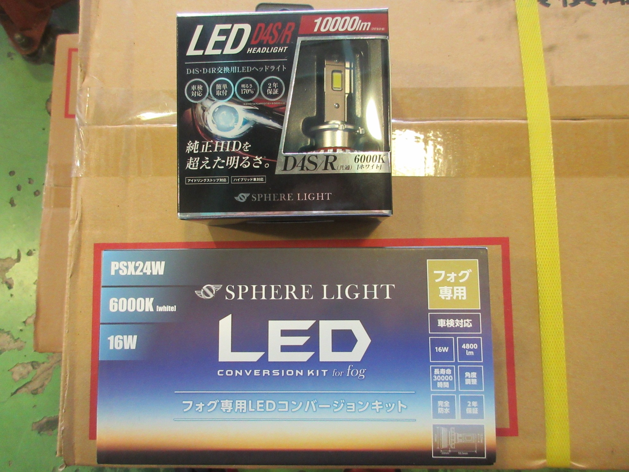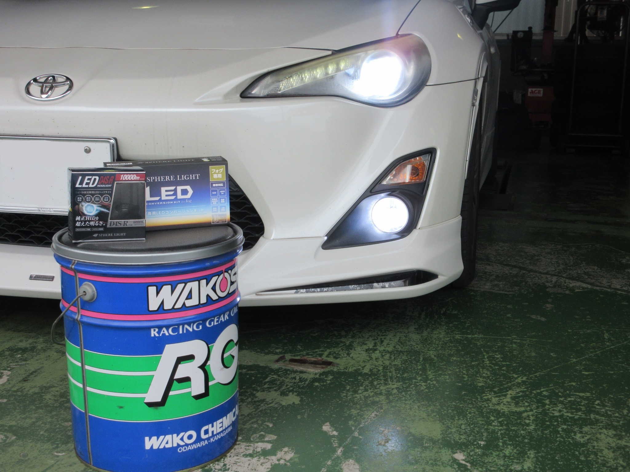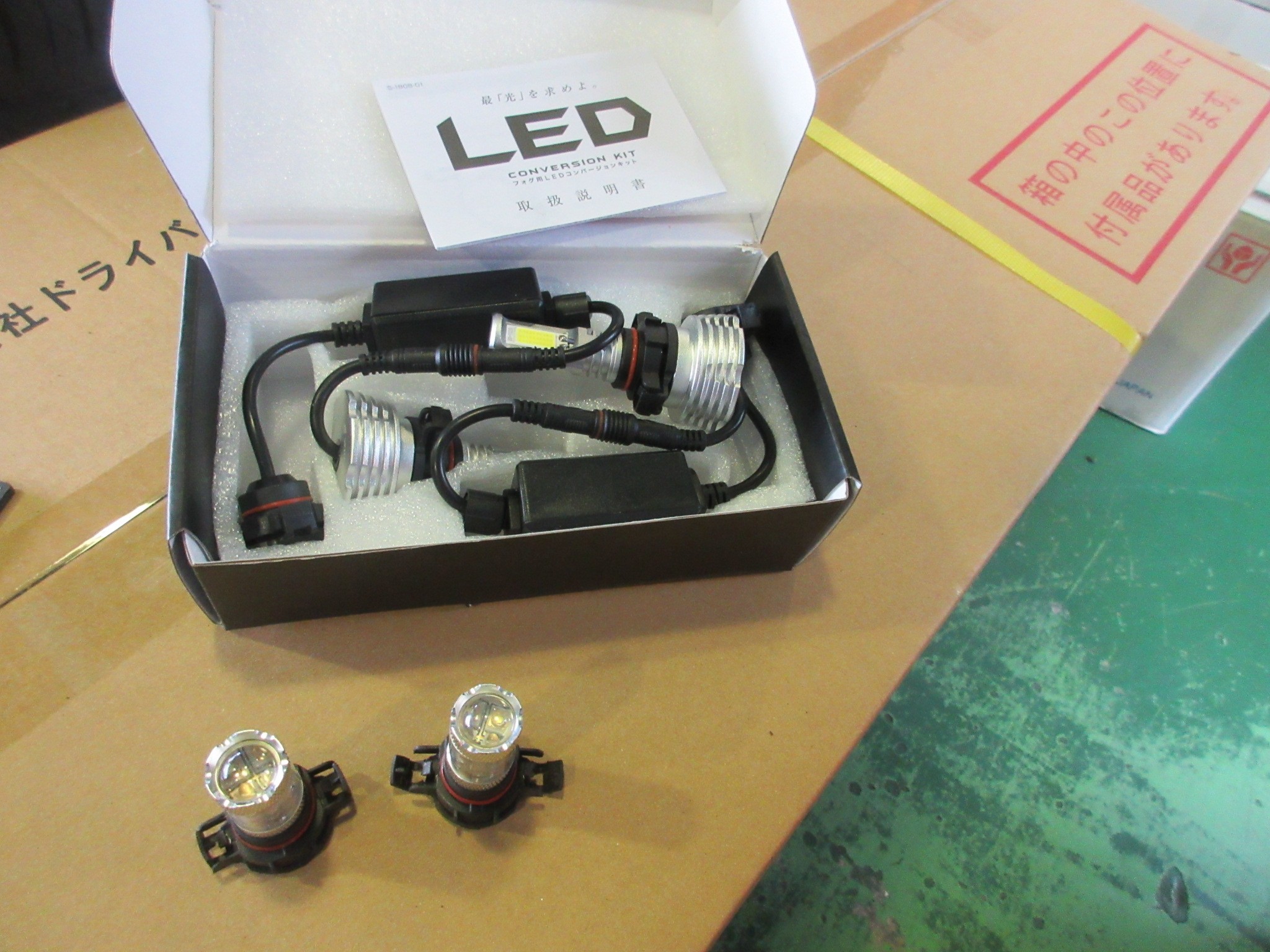 ヘッドライトはHIDからLEDへの変換バルブ、フォグランプはシングルカラーのフォグ専用LEDを使用します。