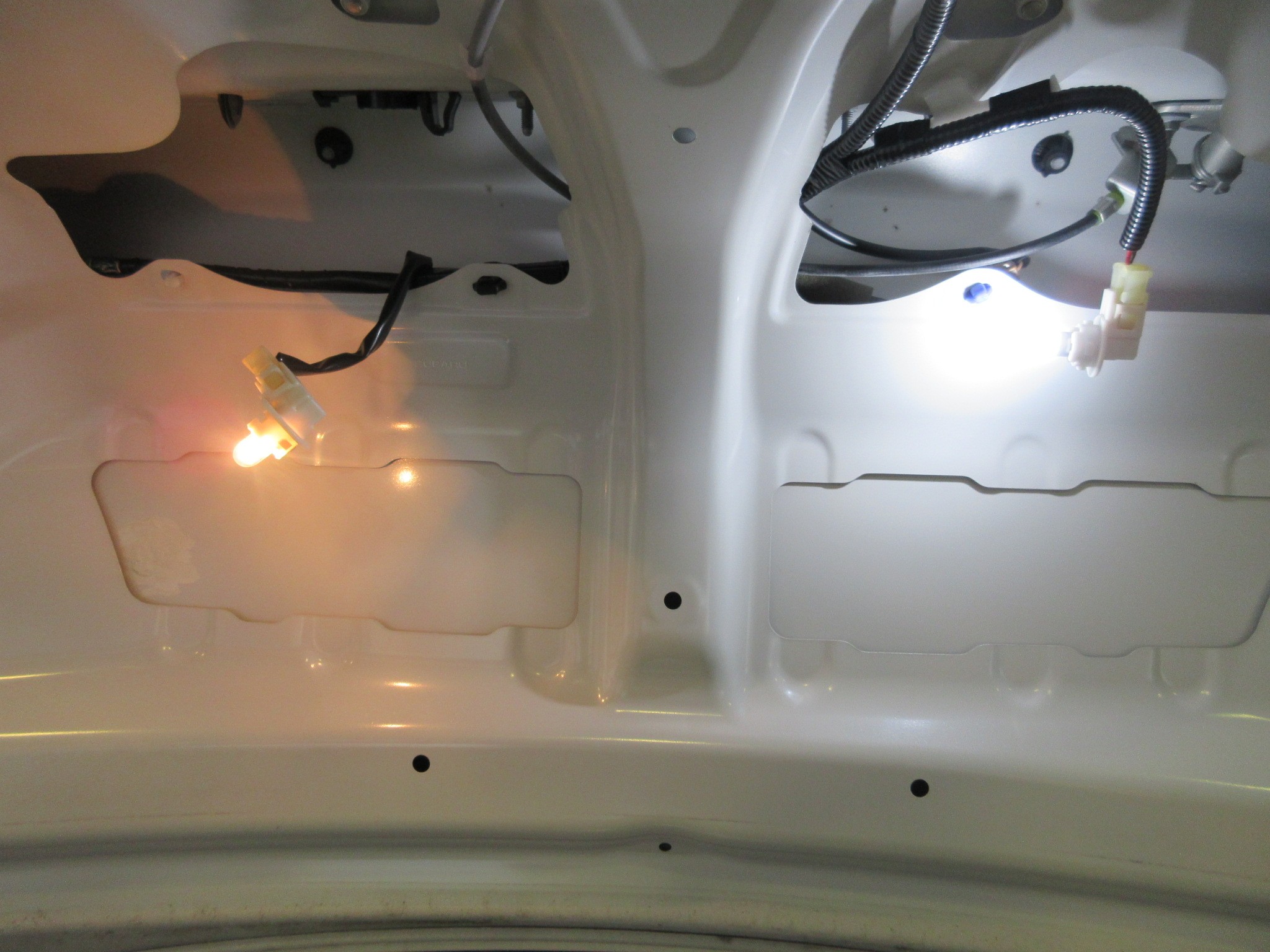 純正はぼんやり照らしてる感じですが、LEDはやっぱり光が強くて明るいですね。