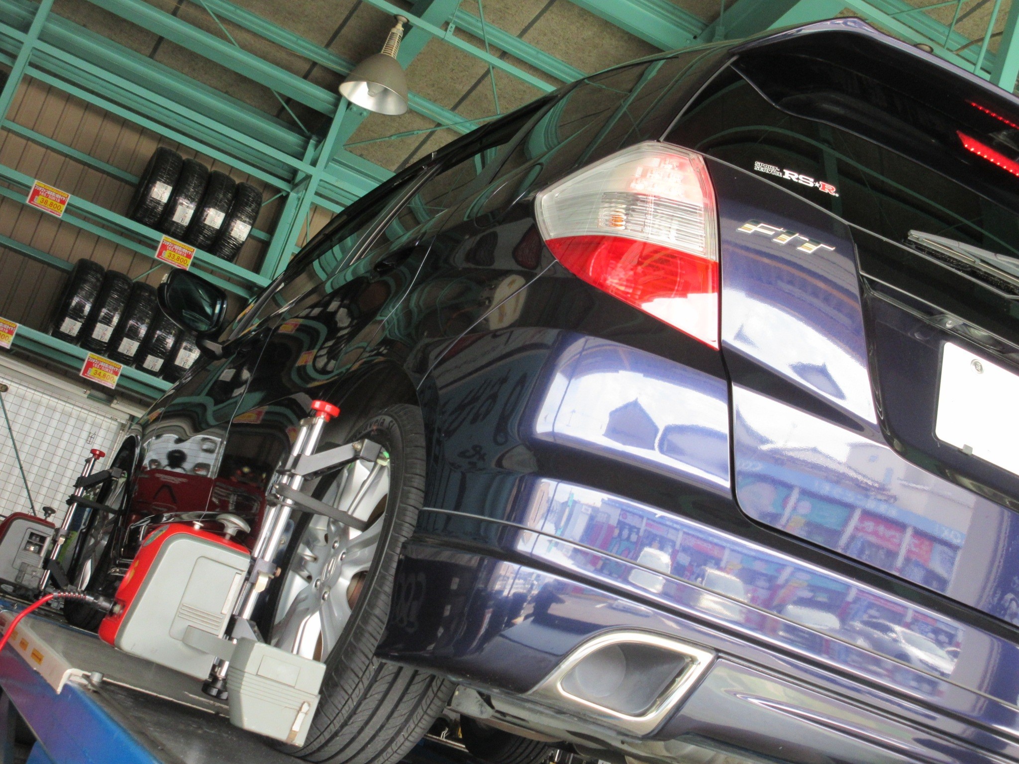 先日ローダウン作業をさせて頂いたフィット(GE8)のアライメント調整です。