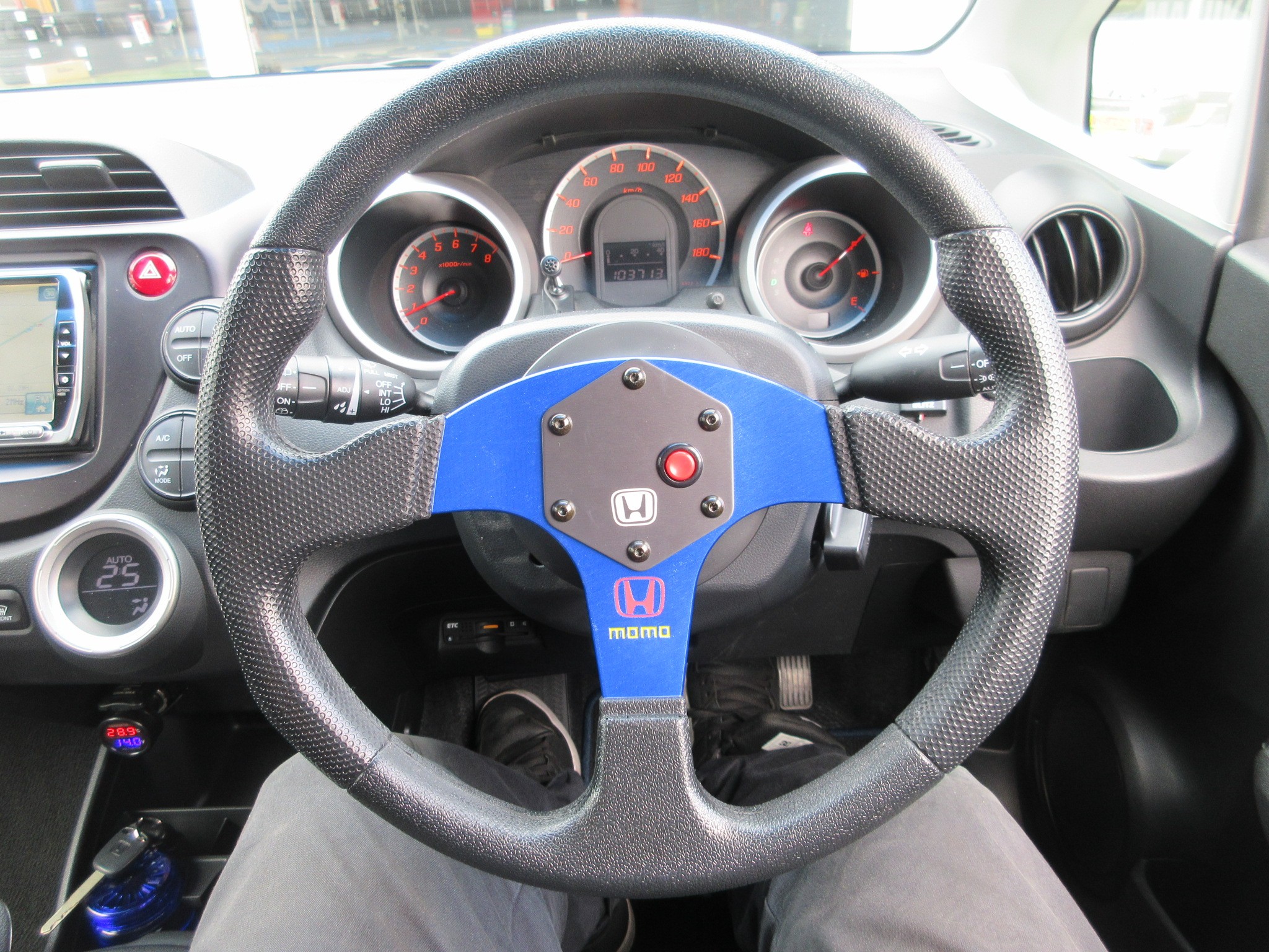 ステアリング交換後はエアバッグが排除された分、操舵感覚は軽くなりましたが、ステアリングセンターは大きくズレました。