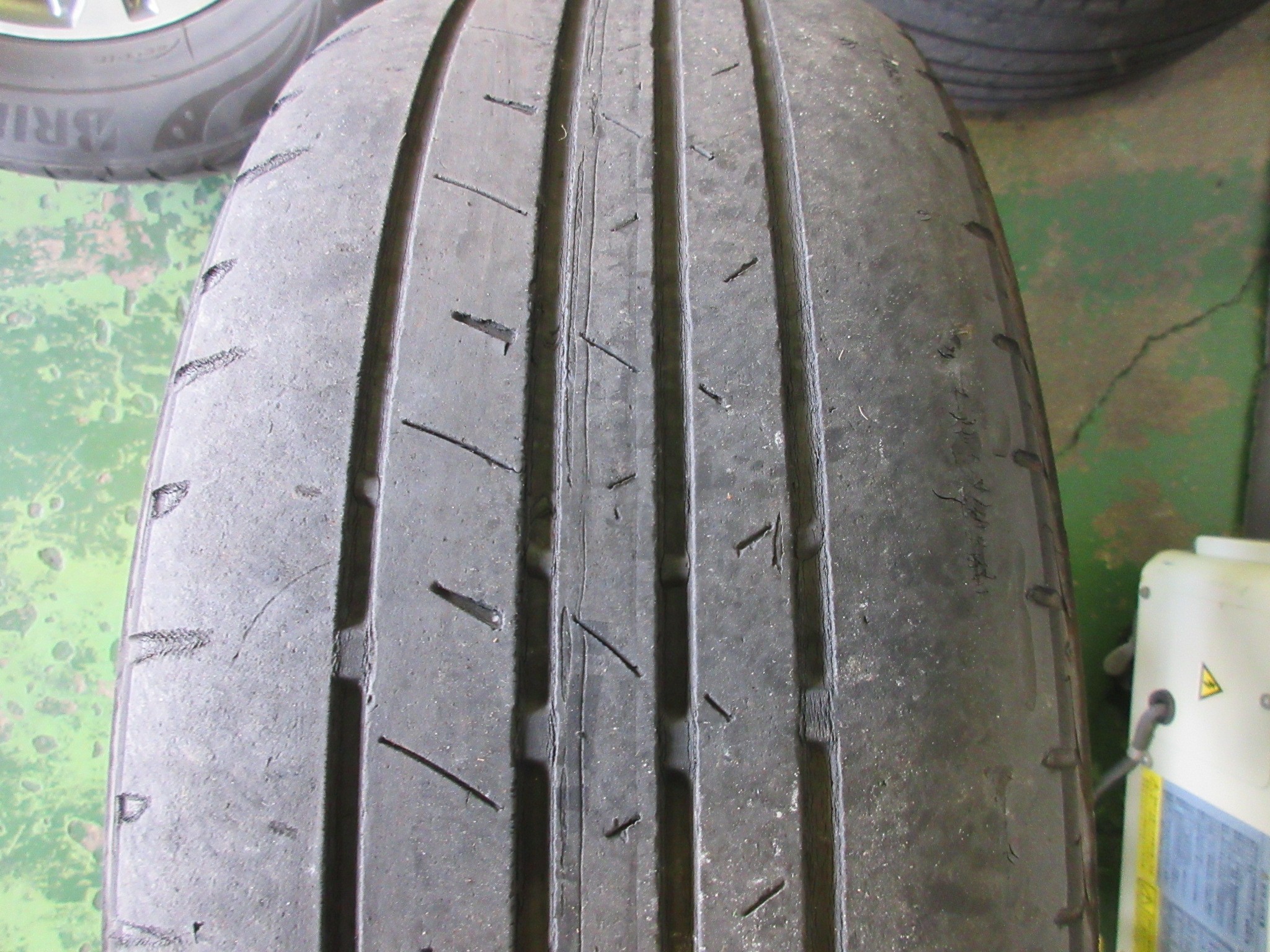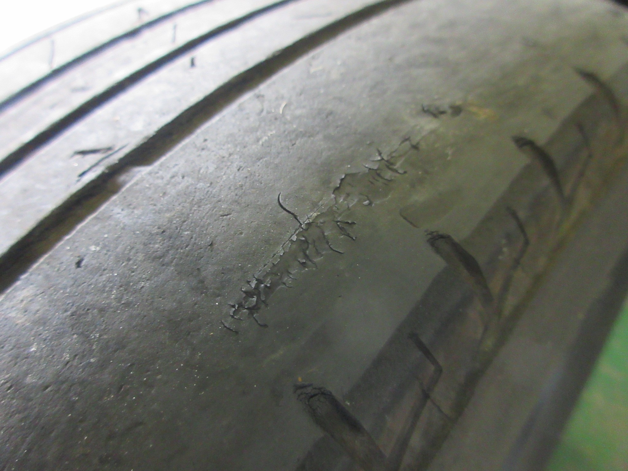 両サイドは縦溝しか確認出来ない状態で、本来横方向にサイプと呼ばれている溝がある筈なのですが、完全に無くなって両サイドはツルツルになっています。