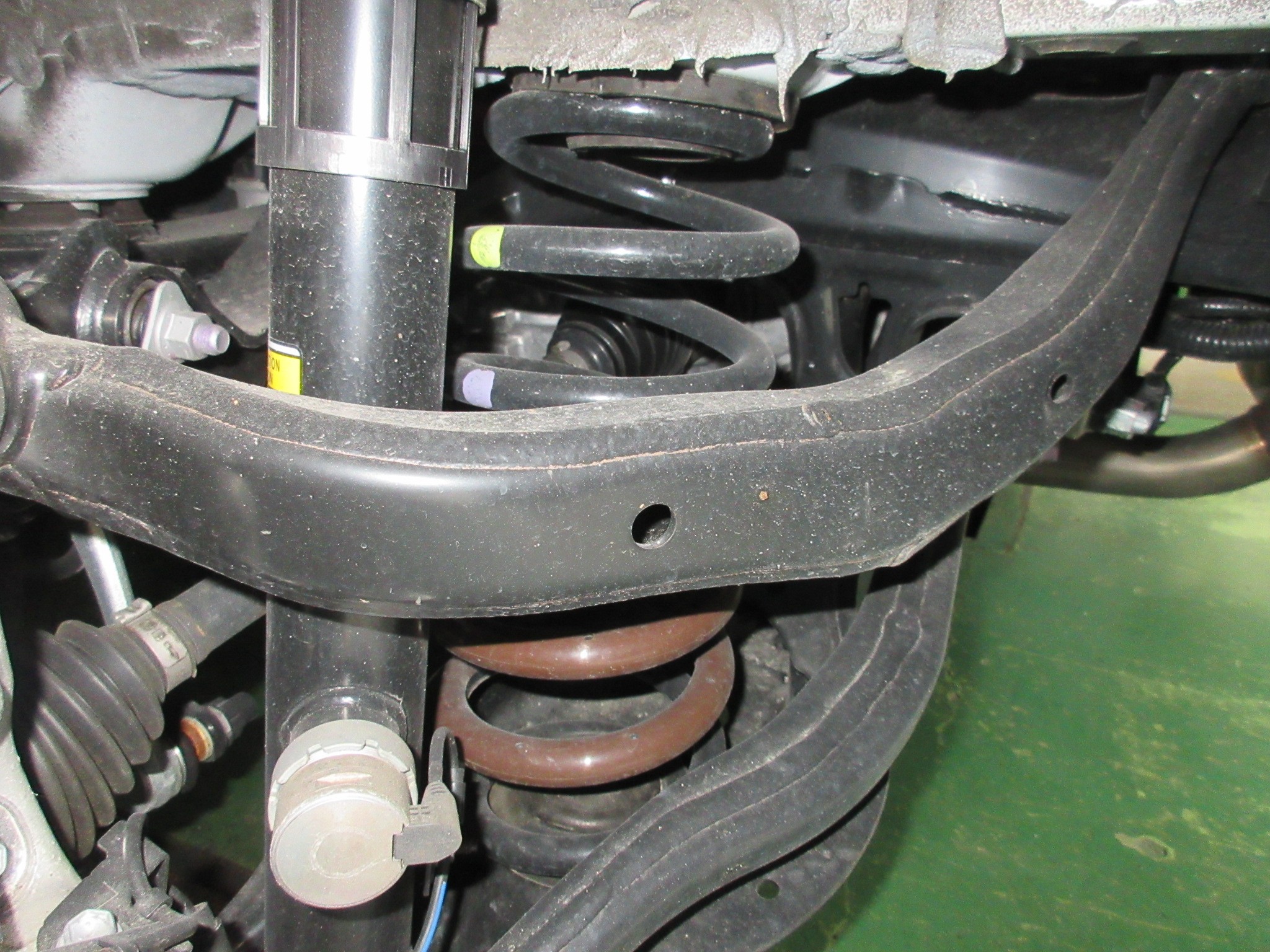 しかしただ交換しただけでは車高が下がり切らないので、アーム関係を1Gにて締め直します。