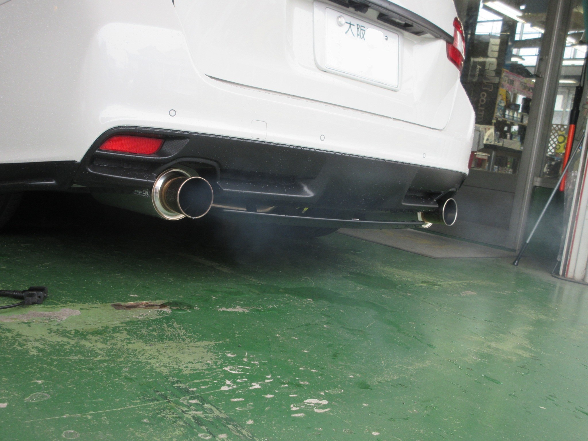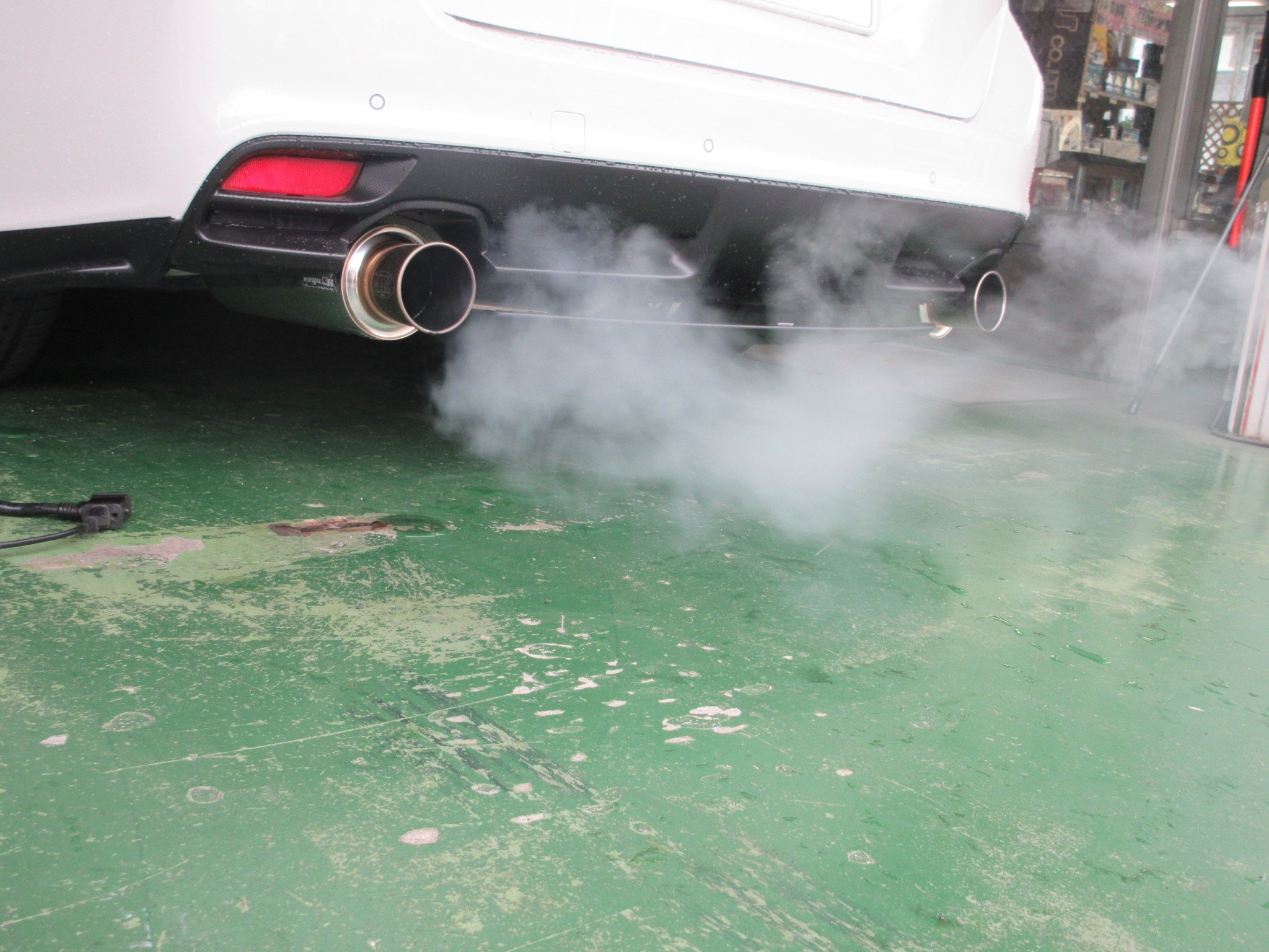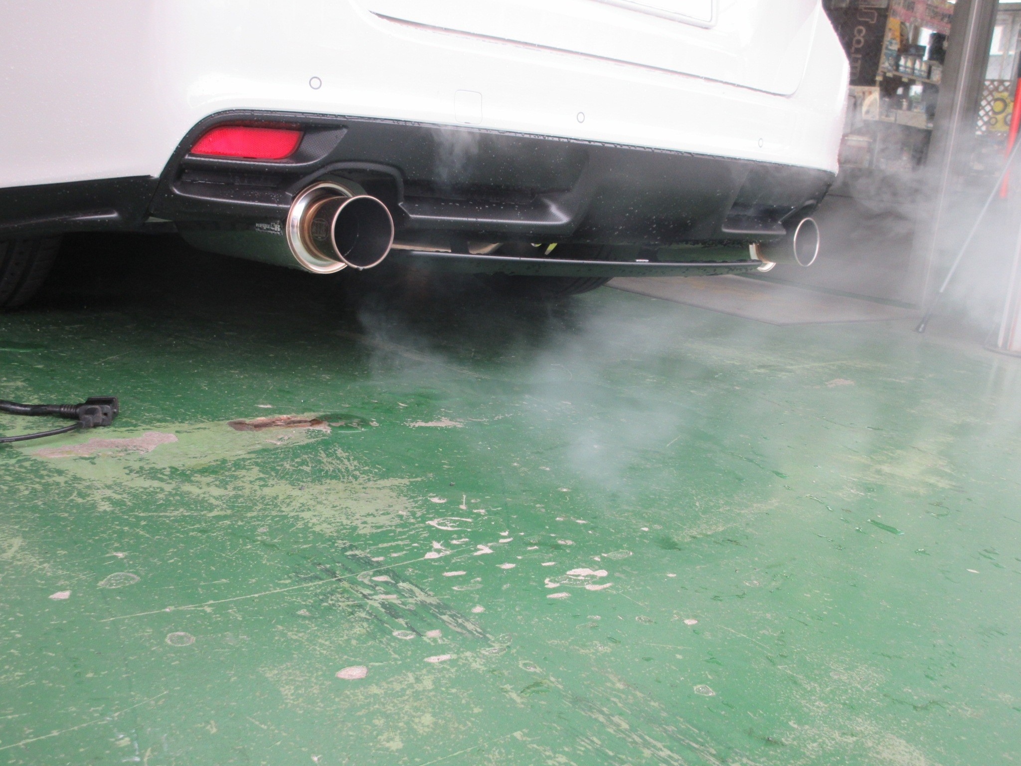 汚れの大小に関わらず白煙が出ない事もありますが、レヴォーグはそれなりに白煙が出ました。