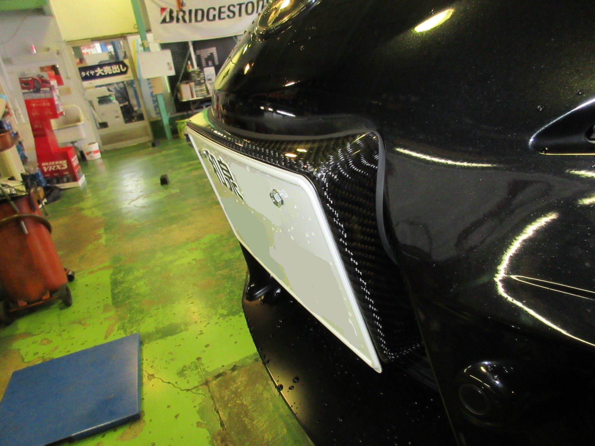 ナンバープレートで大部分は隠れますが、チラッと見えるリアルカーボンが良いですね。